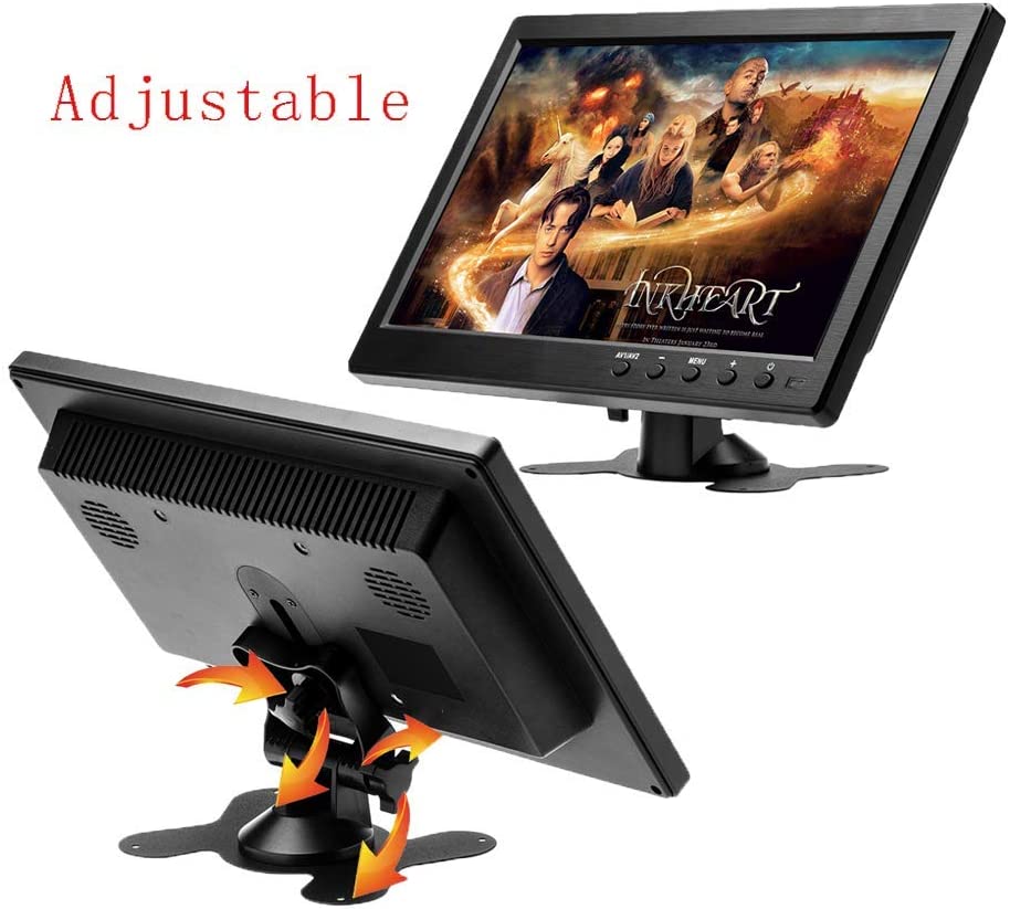 • Portable Monitor: The stand is perfect allowing you to adjust the viewing angle and rotate the screen to meet all your needs. Portable to carry so that you can enjoy your favorite shows at home, on car or during travel. There are four holes on the back of the monitor, so that you can hang it on the wall as a TV. (screws not included).