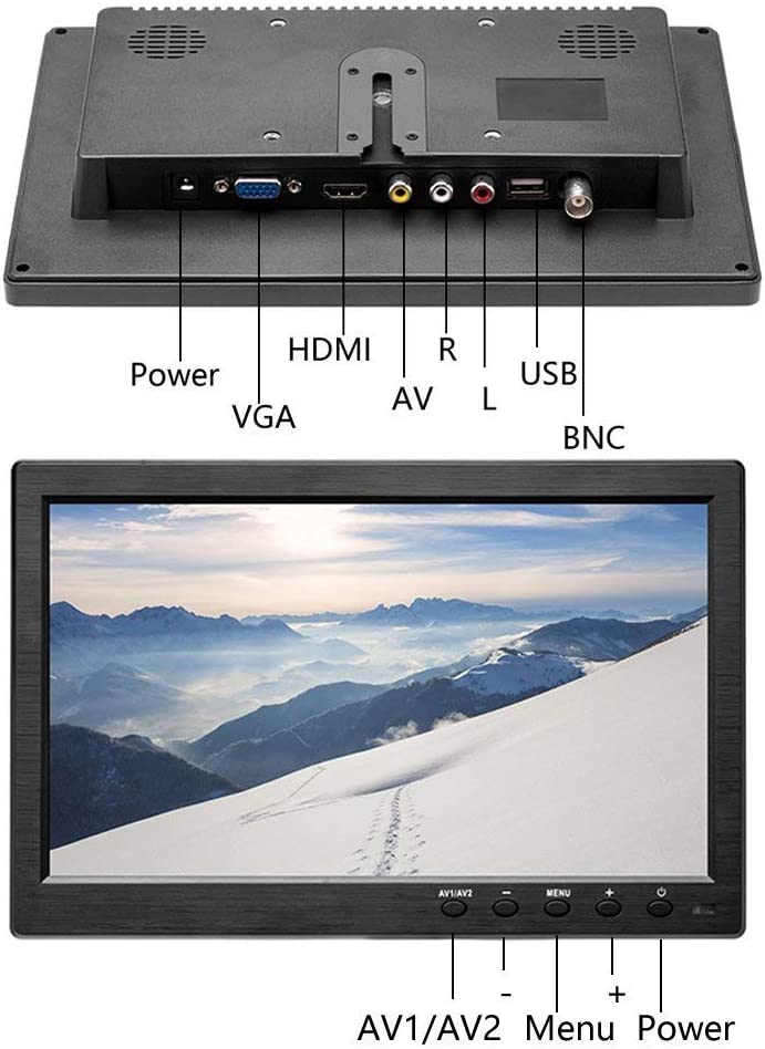 Hikity 10 Inch Small HDMI Monitor Portable CCTV Monitors 1280x600 with BNC, AVI, VGA, HDMI Input Cable, Remote Control, Built-in Speakers, for PC, CCTV, Security Camera, Raspberry Pi, X-Box