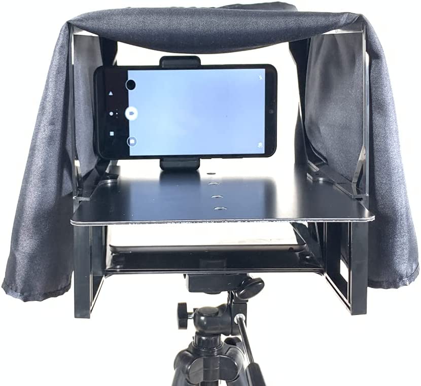 • Multi-device compatibility ✓ The teleprompter kit is compatible with any smartphones (including smartphone holders), tablets, photo cameras, video cameras and can be mounted on all types of tripods.