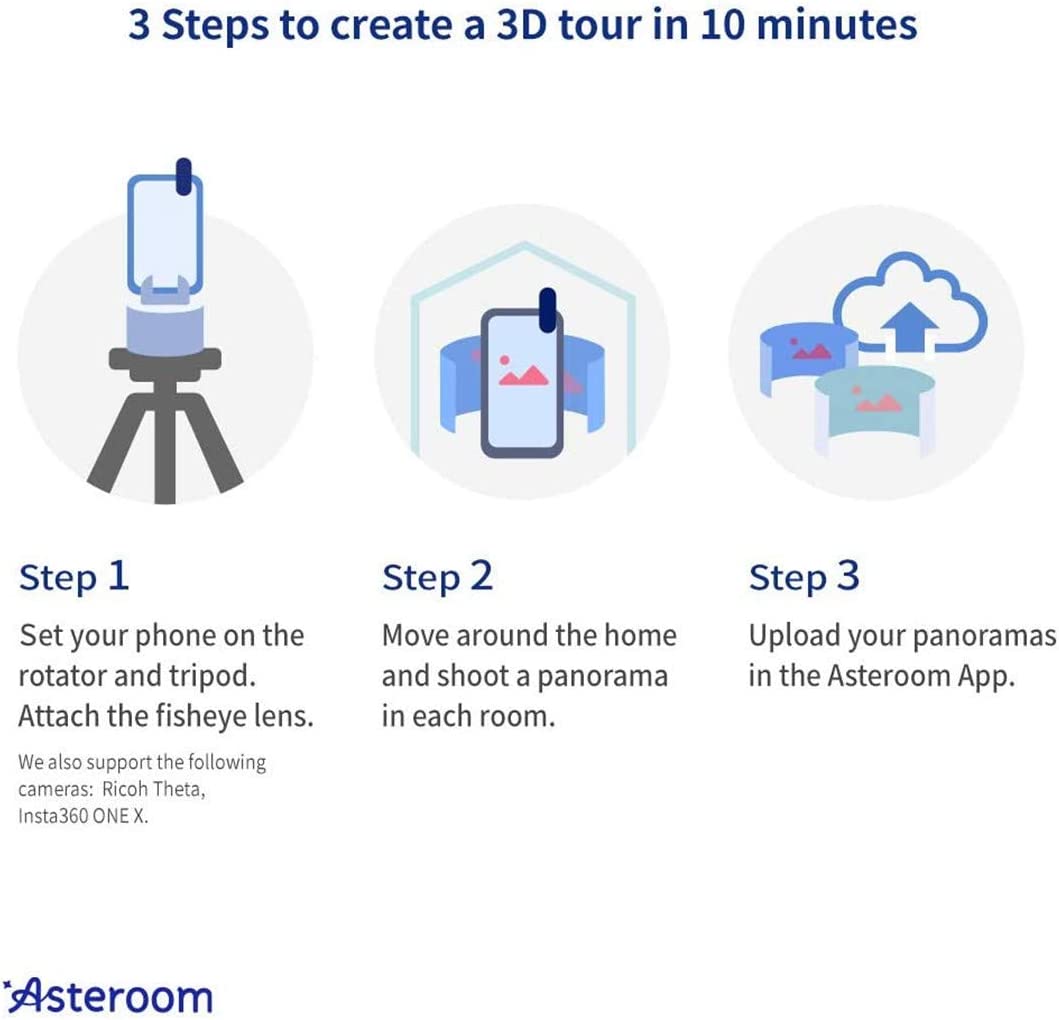 Asteroom 360 Camera 3D Virtual Tour Real Estate Kit - Gear Includes: Tripod, Digital Camera Rotator, Fisheye Cam Lens (Asteroom iPhone/Samsung Phone Case Not Included, Purchased Separately on Amazon)