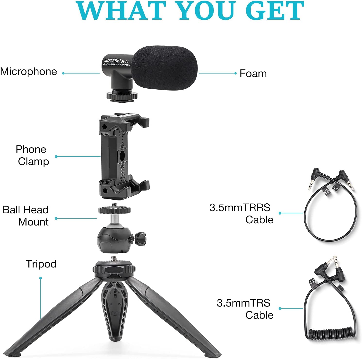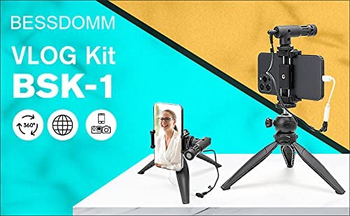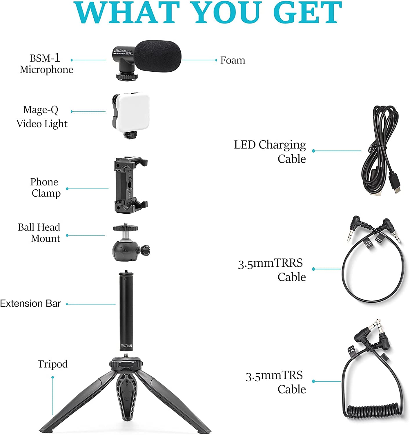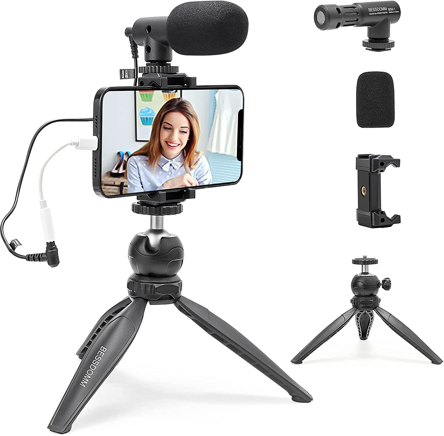 BESSDOMM Smartphone Vlogging Kit for iPhone13ProMax,YouTube Starter Kit w/Phone Tripod Phone Microphone LED Light Extension Pole,Content Creator Video Kit for Live-Streaming,YouTube,TikTok(BSK-3)
