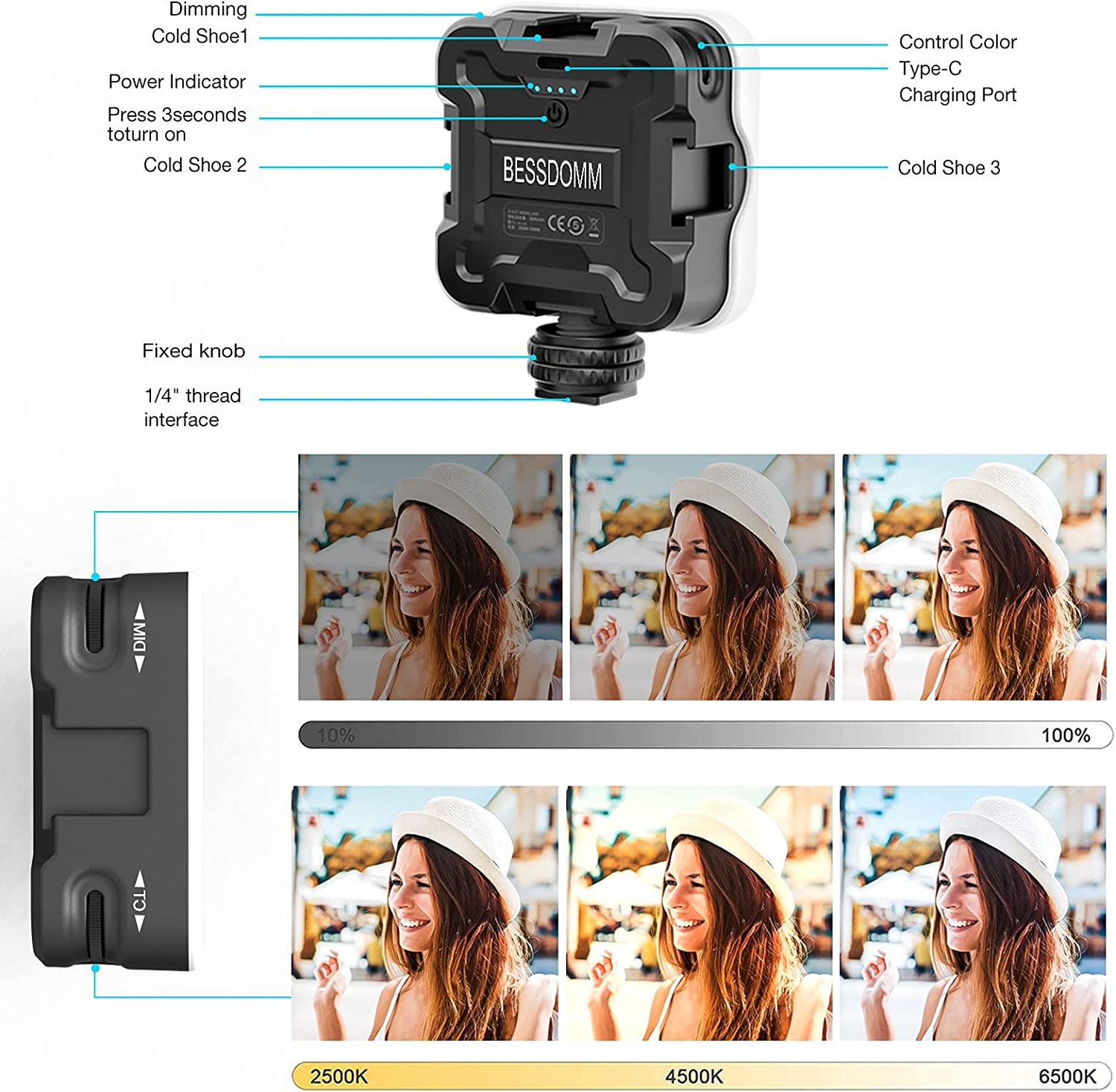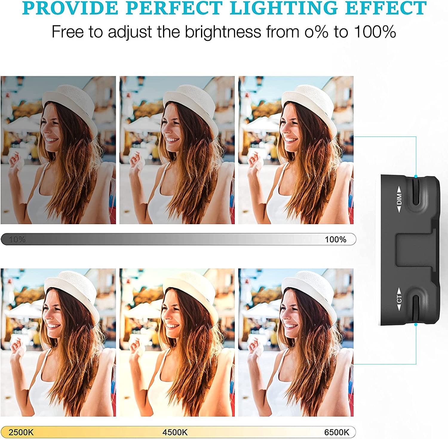 • 【Rechargeable Video LED Light】The LED light meets various lighting needs by adjusting the color temperature between 2500-5500K and the brightness from 1% to 100%.With the diffuser,this light for phone will present a softer light.With 2000mAh built-in rechargeable battery,no need to worry about changing batteries.(Type-C charging,charger not included).