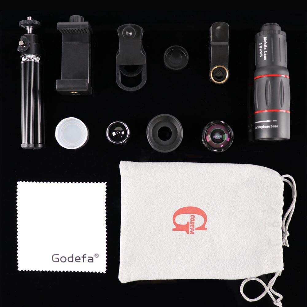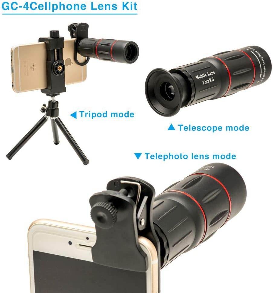 Cell Phone Camera Lenses Kit, 4 in 1 18X Telescopic Zoom Lens/4K HD Super Wide Angle/Macro/Fisheye Lens/Tripod/Camera Shutter Compatible with iPhone 12 11 Xs Max 8 7 6 Plus, Samsung Moto and More