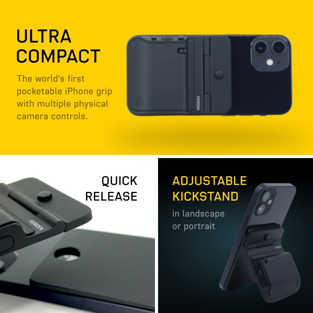• POCKETABLE: Just 10.7 mm (0.39in) deep, Fjorden's patent-pending design is the world's first pocketable camera grip for iPhone with multiple physical camera controls.