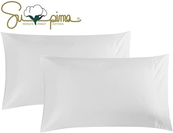 100% Supima Cotton 600 Thread Count Queen Pillowcase Set of 2, Luxury Hotel Pillow Cases, Soft & Silky Sateen Weave, Premium Quality Stardand Pillowcase 2 Pieces (White, STD)