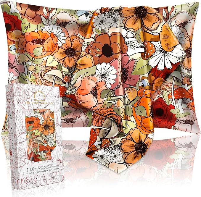 2 Pack Mulberry Silk Pillow Case for Hair and Skin 19 Momme Standard 26"x20" Mushroom Bushes Silk Pillowcase Soft Smooth Satin Pillowcase Sleeping for Women
