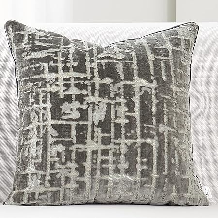 Alerfa 18 x 18 Inch Square Geometrical Plaid Striped Embroidery Cut Velvet Cushion Case Luxury Modern Throw Pillow Cover Decorative Pillow for Couch Sofa Living Room Bedroom Car, Silver Gray