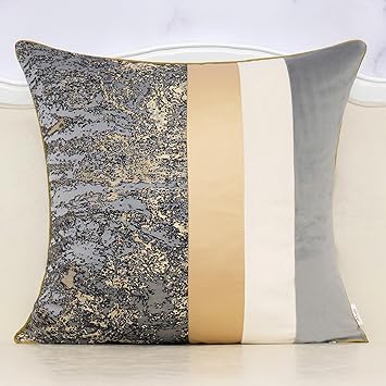 Alerfa 18 x 18 Inch Square Gray White Gold Patchwork Velvet Jacquard Cushion Case Luxury Modern Throw Pillow Cover Decorative Pillow for Couch Sofa Living Room Bedroom Car
