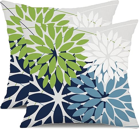 DFXSZ Outdoor Throw Pillow Covers 18x18 Inch Set of 2 Waterproof Spring Summer Geometric Elegant Blue Green Outdoor Pillow Covers for Patio Funiture Garden Couch