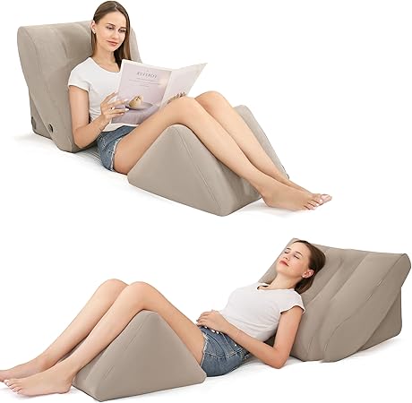 Inflatable Bed Wedge Pillow Set, 2 PCS Travel Wedge Pillow, Post Surgery Support Pillow with Adjustable Height, for Relief After Surgery, Knee & Back Pain, Acid Reflux, Anti Snoring, GERD