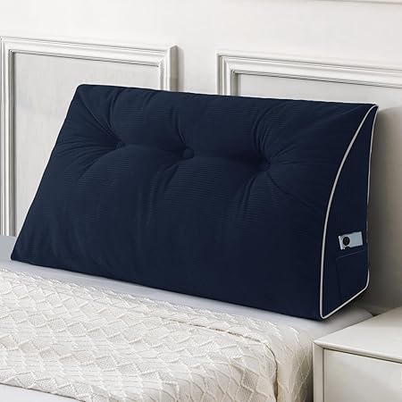 Sasttie Headboard Pillow Twin, Wedge Pillow Headboard for Daybed, Triangular Back-Rest Support Cushion for Sitting Up in Bed - Features Removable Washable Cover, Dark Greyver, Navy