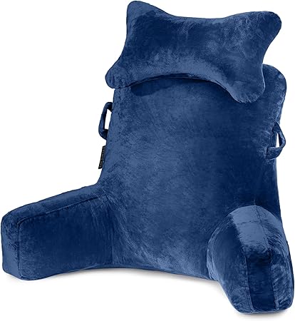 SLIGUY Reading Pillow-Bed Rest Pillow with Detachable Neck Roll & Higher Support Arm for Sitting in Bed Couch or Floor-Backrest Reading Pillow Adult Back Pillow for Reading/Watching TV/Gaming, Blue