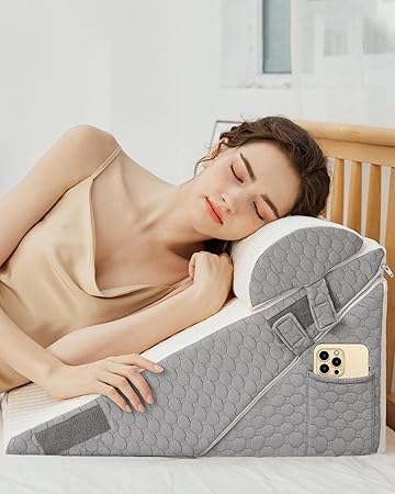 YIHATA Bed Wedge Pillow for Sleeping, Memory Foam Wedge Pillow Set for Post Surgery 12 Inch Adjustable Triangle Pillow Wedge with Washable Cover for Legs, Back Pain, Snoring, Alleviate Acid Reflux