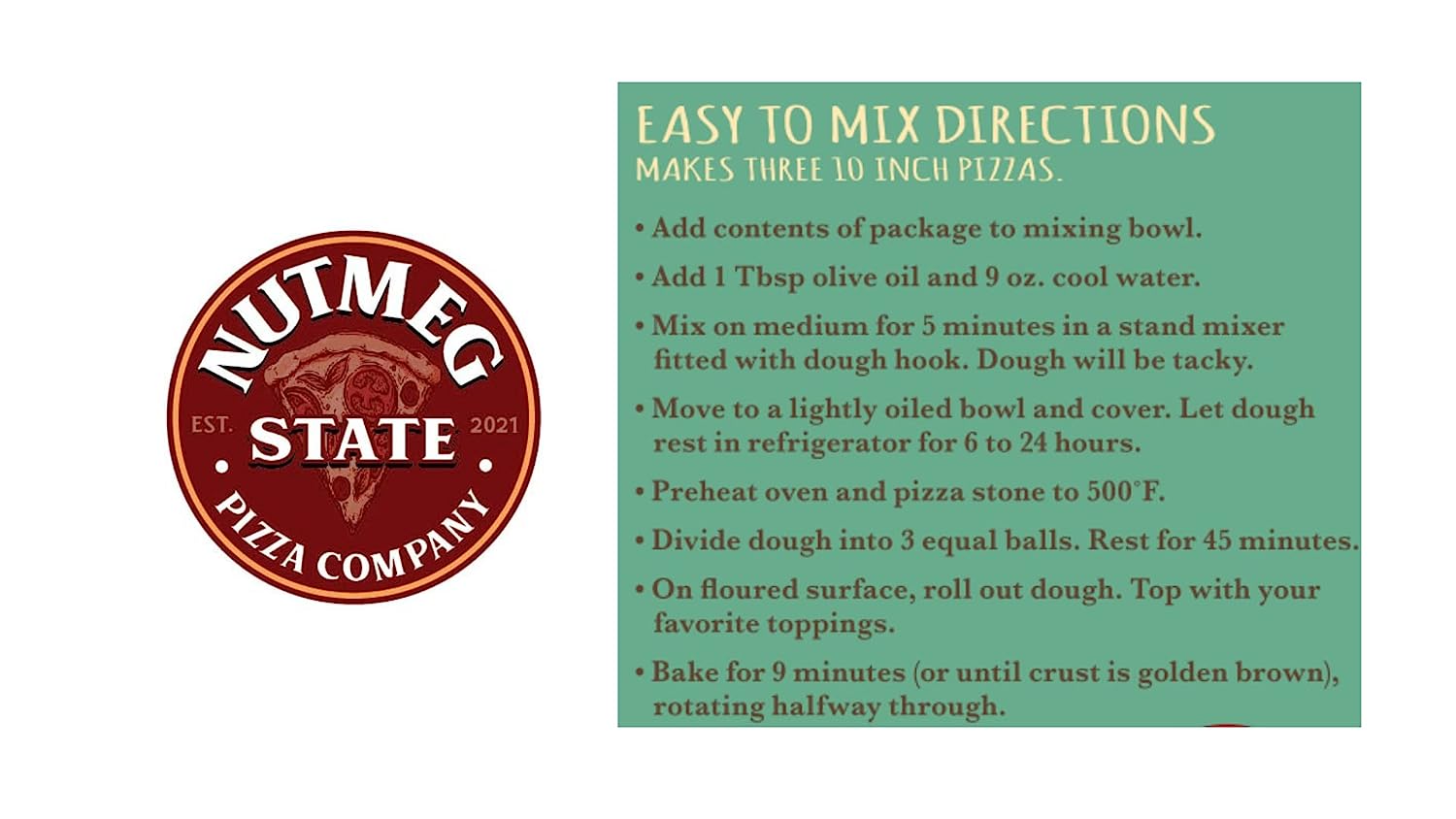 Skip the pizzeria delivery and enjoy quality time in the kitchen making pizza from scratch with Nutmeg State Pizza Company Organic Pizza Dough Mix. Each package allows you to create three 10” pizzas, a 12” deep-dish pizza, calzones or even flat breads. Top each crust with your favorite pizza sauce, cheese, meats and veggies to create great-tasting pizza right at home.