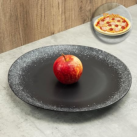 12'' Ceramic Pizza Pan Stone for 12'' Pizza Fine Procelain Big Large Round Plate Serving Tray Dish Platter for Pie Cookie Oven Baking and Cooking (Black)
