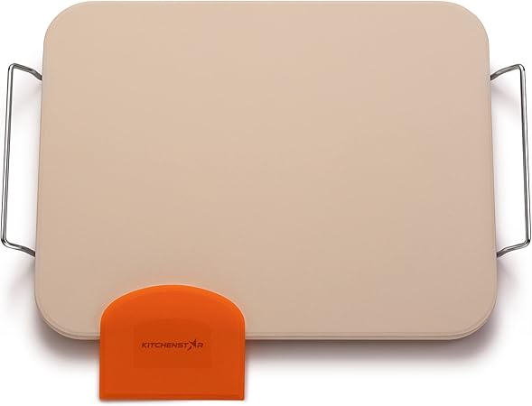 15"x12" Pizza Stone for Oven & Grill with Handles - Natural Cordierite Baking Stone for Pizza & Bread (1500 ÎçF Resistant, Rectangular)