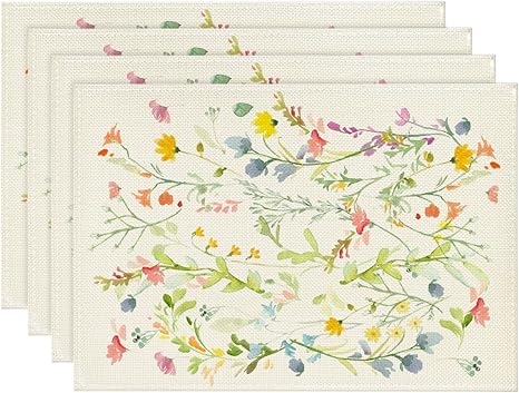 Artoid Mode Wildflowers Bloom Flowers Spring Placemats Set of 4, 12x18 Inch Seasonal Summer Floral Table Mats for Party Kitchen Dining Decoration
