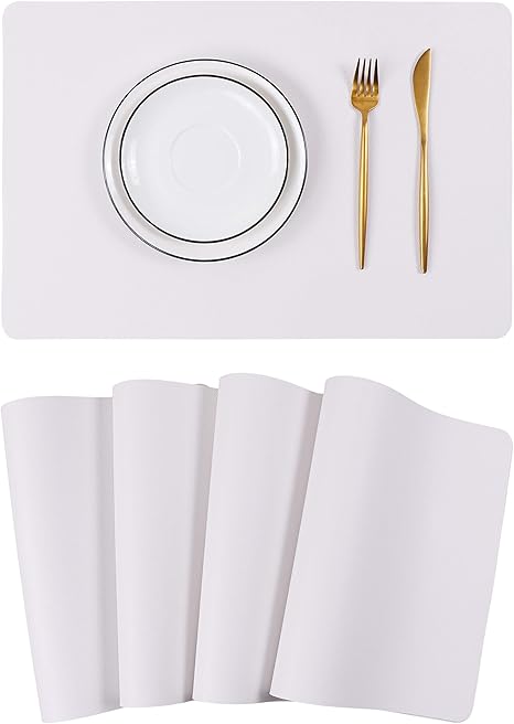 Wipeable Placemats Leather Table Mats Waterproof Heat-Resistant Easy to Clean for Dining Table Set Kitchen Table (4, White)