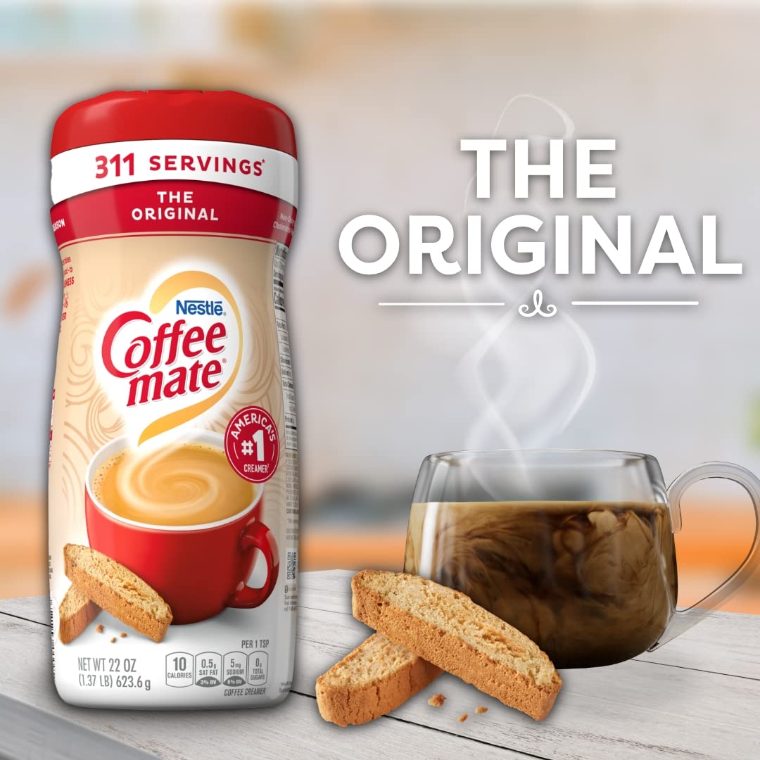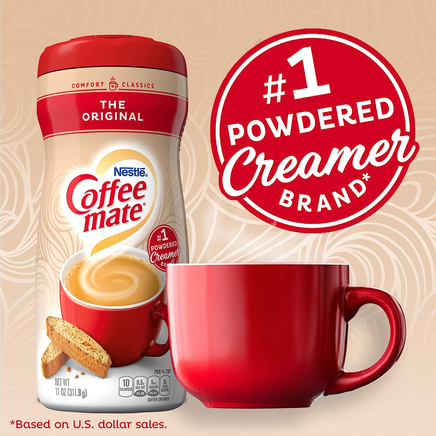 Nestle Coffee mate Original Powder Coffee Creamer is an ideal way to create a delicious cup of coffee. Smooth and rich, this Coffee mate original creamer delivers a warm, rich flavor that transforms every drinking experience. Coffee mate creamer is a lactose free and cholesterol free non dairy creamer. Coffee creamer powder makes it easy to pour, stir and enjoy the exact amount into your prepared coffee for a delicious, flavorful cup. This classic original flavored coffee creamer is the perfect way to wake up your coffee, whether it's your morning cup or an afternoon pick-me-up. Includes one 11 ounce bottle of Coffeemate powdered coffee creamer. Store Coffee mate powdered creamer in a cool, dry place. Turn the coffee you like into coffee you love with Nestle Coffee mate Coffee Creamer.