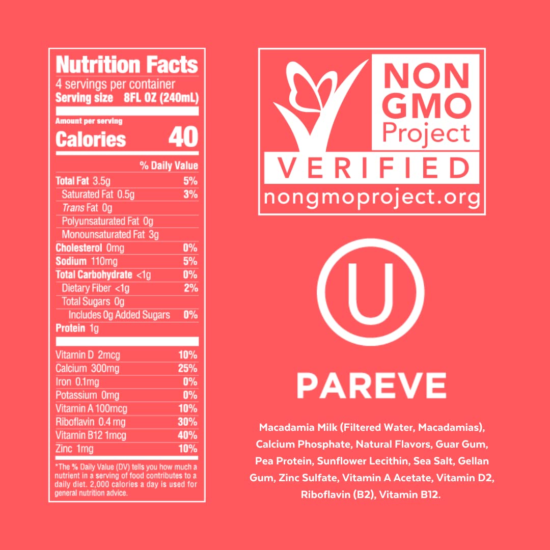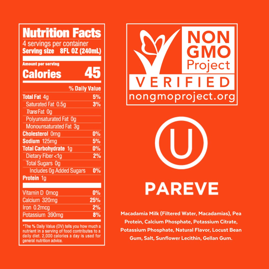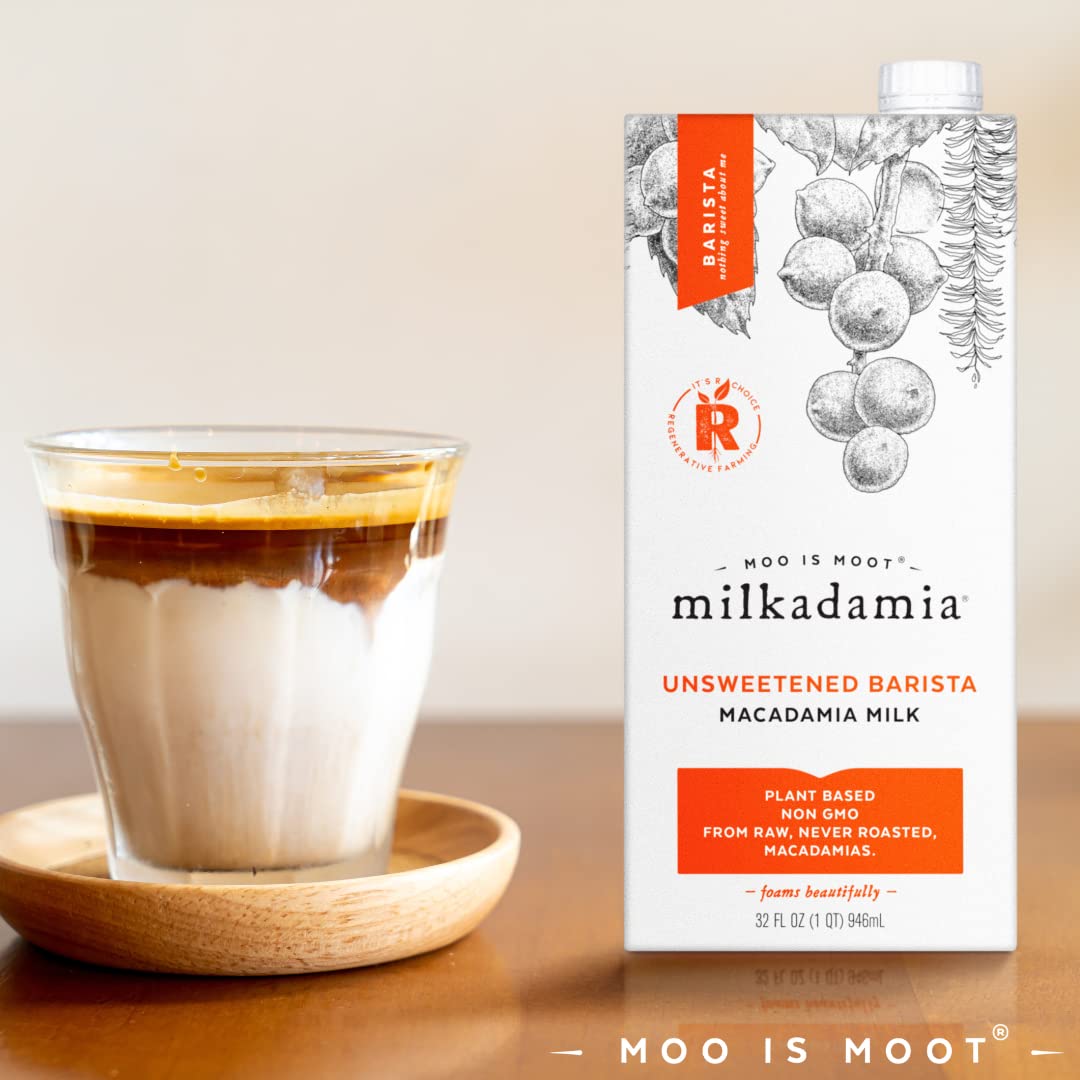 Milkadamia Latte Da Barista – the next big 'ta-da!' in the coffee world! Created with only the highest quality raw macadamias, Latte Da's subtle, creamy taste enhances coffee's flavor. It steams magically, producing beautiful, velvety foam. And it's deliciously free of dairy, soy, GMOs, and gluten. From trees nestled in the hinterland of the eastern coast of Australia, macadamia groves are in total harmony with the earth and situated in the very region where the tree originated. With just the right combination of sunshine and rainfall to ensure the best tasting raw macadamias, the milky deliciousness of milkadamia perfectly complements the roast.