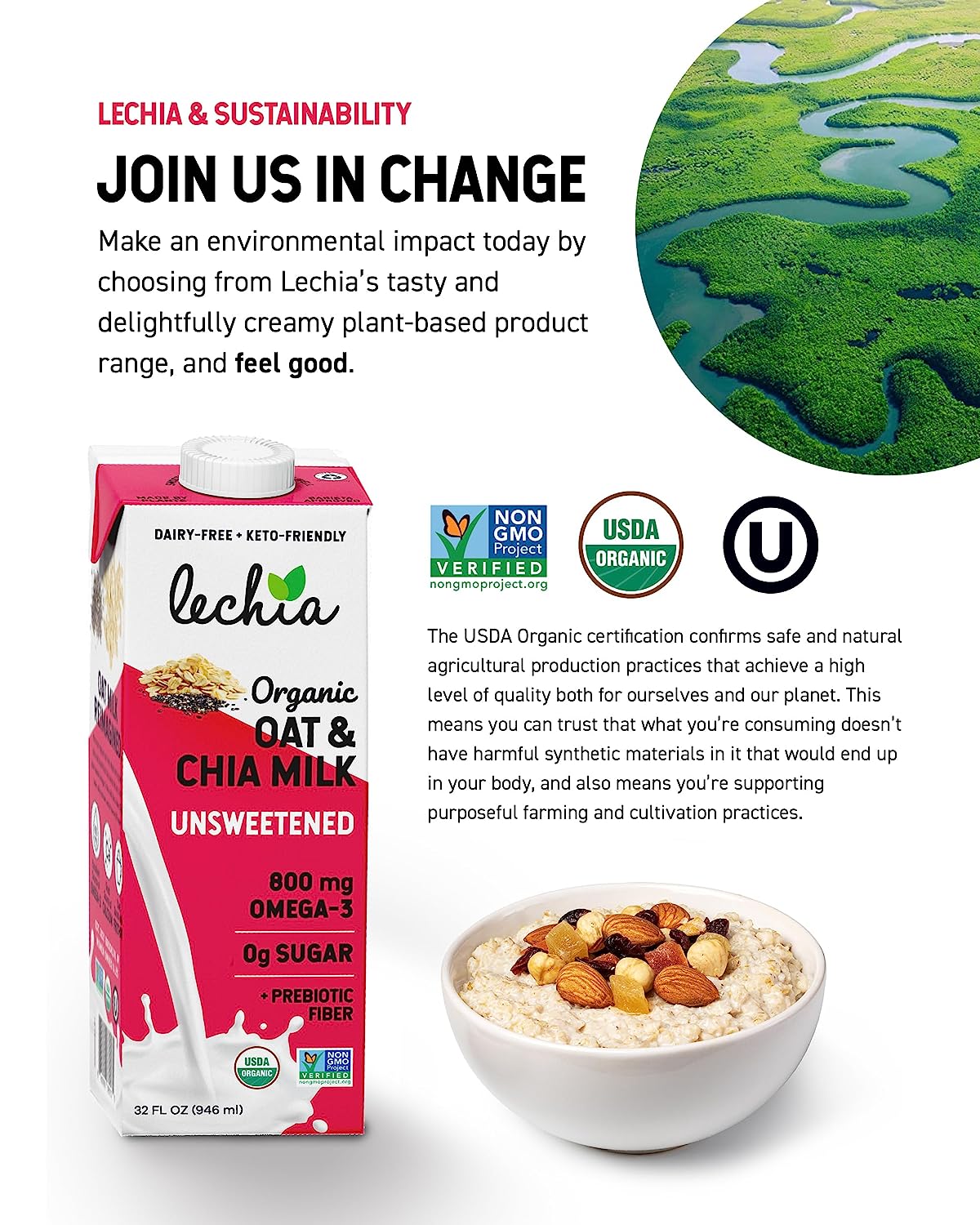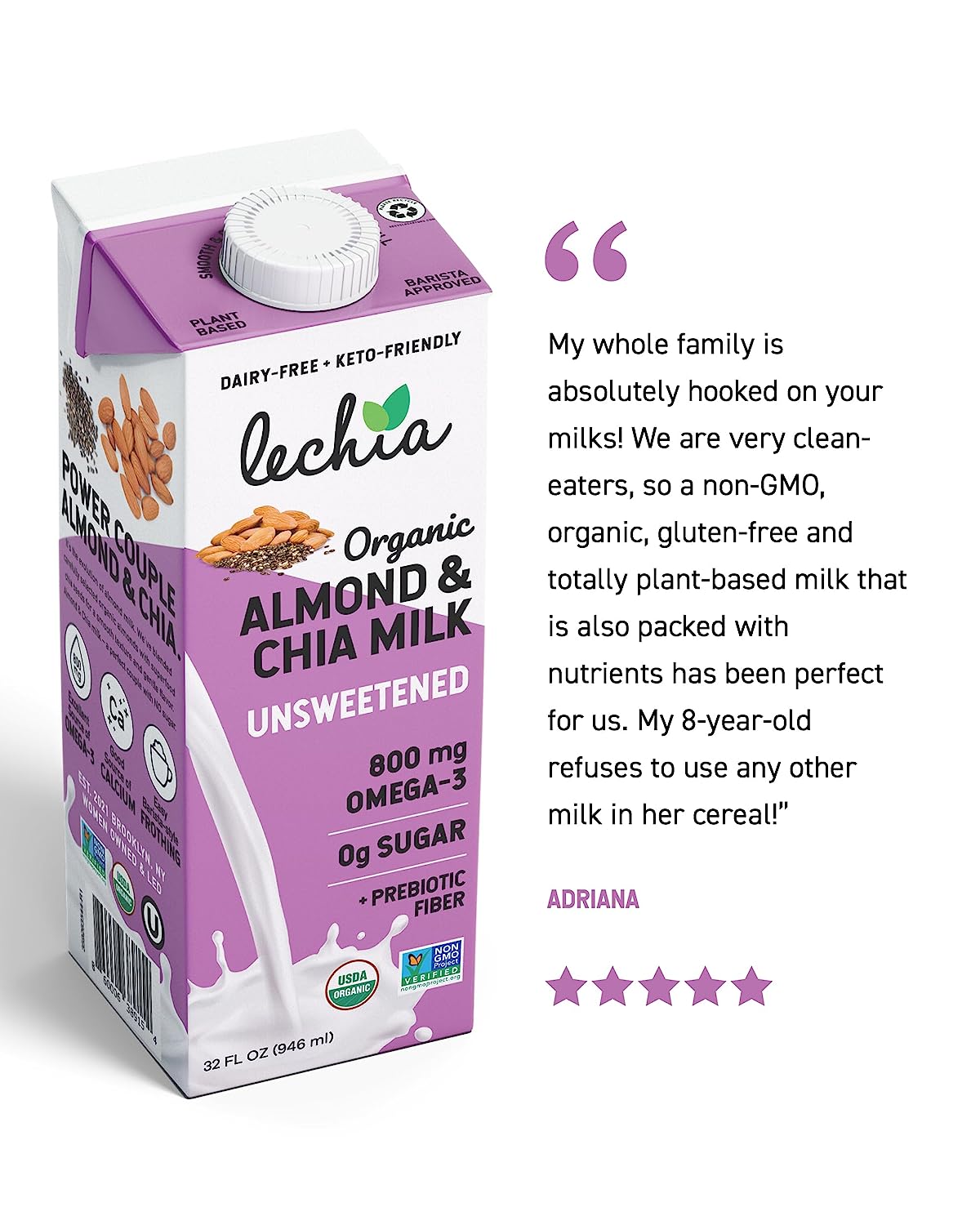 • CERTIFIED – Lechia Milk is always certified USDA Organic, NON-GMO, Vegan, Kosher, Keto-Friendly, and Gluten-Free. Lechia Organic Macadamia Milk Unsweetened is diabetic-friendly. That is goodness you can taste.