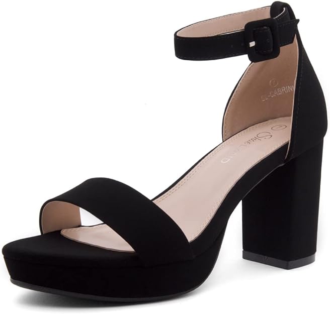 Shoe Land SL-Cabrini Womens Platform Heels Open Toe Chunky Heels Comfy Block heeled Sandals Ankle Strap Dress Heels Black White Red Chunky Platform Heels for Prom Wedding