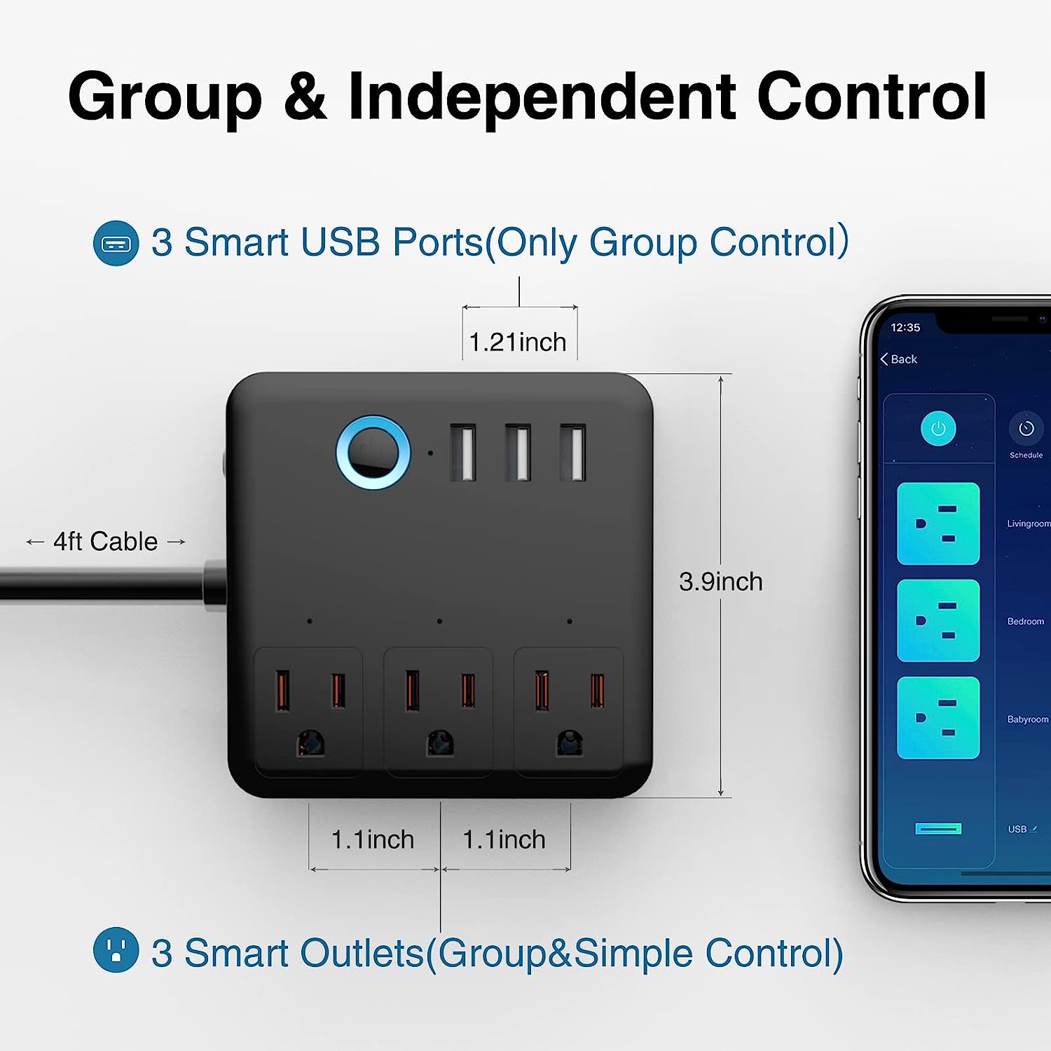 GHome Smart Power Strip, 3 USB Ports and 3 Individually Controlled Smart Outlets, WiFi Surge Protector Works with Alexa Google Home, Home Office Cruise Ship Travel Multi-Plug Extender Flat Plug, UL