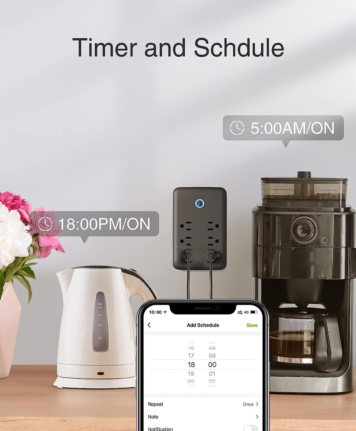 • Timer Function - Set a schedule to turn on/off electrical appliances when you are home or away by Timer and Countdown function. Just like lamps, coffee makers, humidifiers, lights, and so on. This also helps lower your electricity bill by turning power-hungry devices off when they are not working.