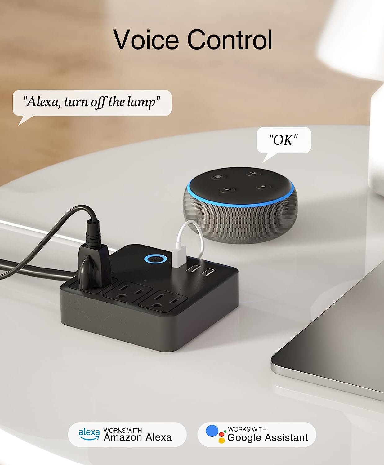 • APP Remote Control - Free app controls the smart outlet plug by your smartphone (ios 8.0 or above/Android 4.4 or above). You can control the Alexa power strip at any time anywhere. Only support 2.4GHz WiFi network. No paid subscription service.