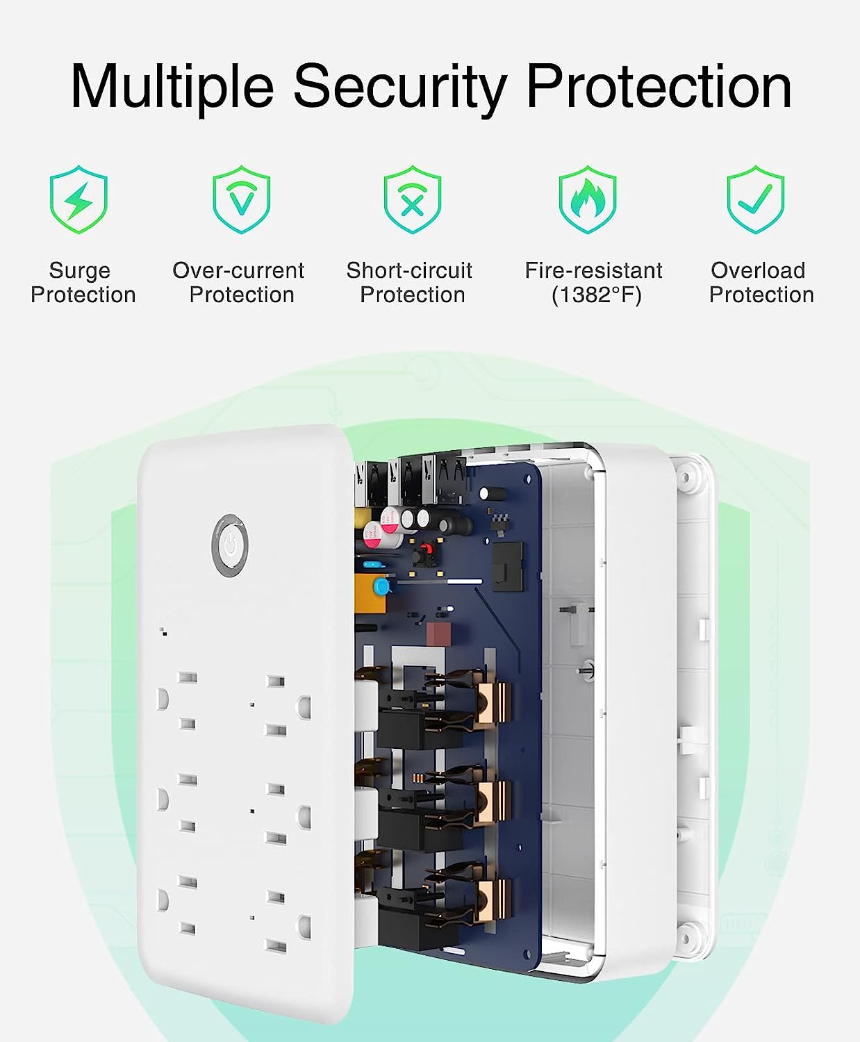 • Multiple Safeguards - Smart extension cord is made of high-quality materials. Support 100-240V, 10A maximum load. The circuit breaker automatically breaks off when the current exceeds the threshold, preventing plugged-in high-temperature devices from damages. PC-V0 materials can protect your home safely.