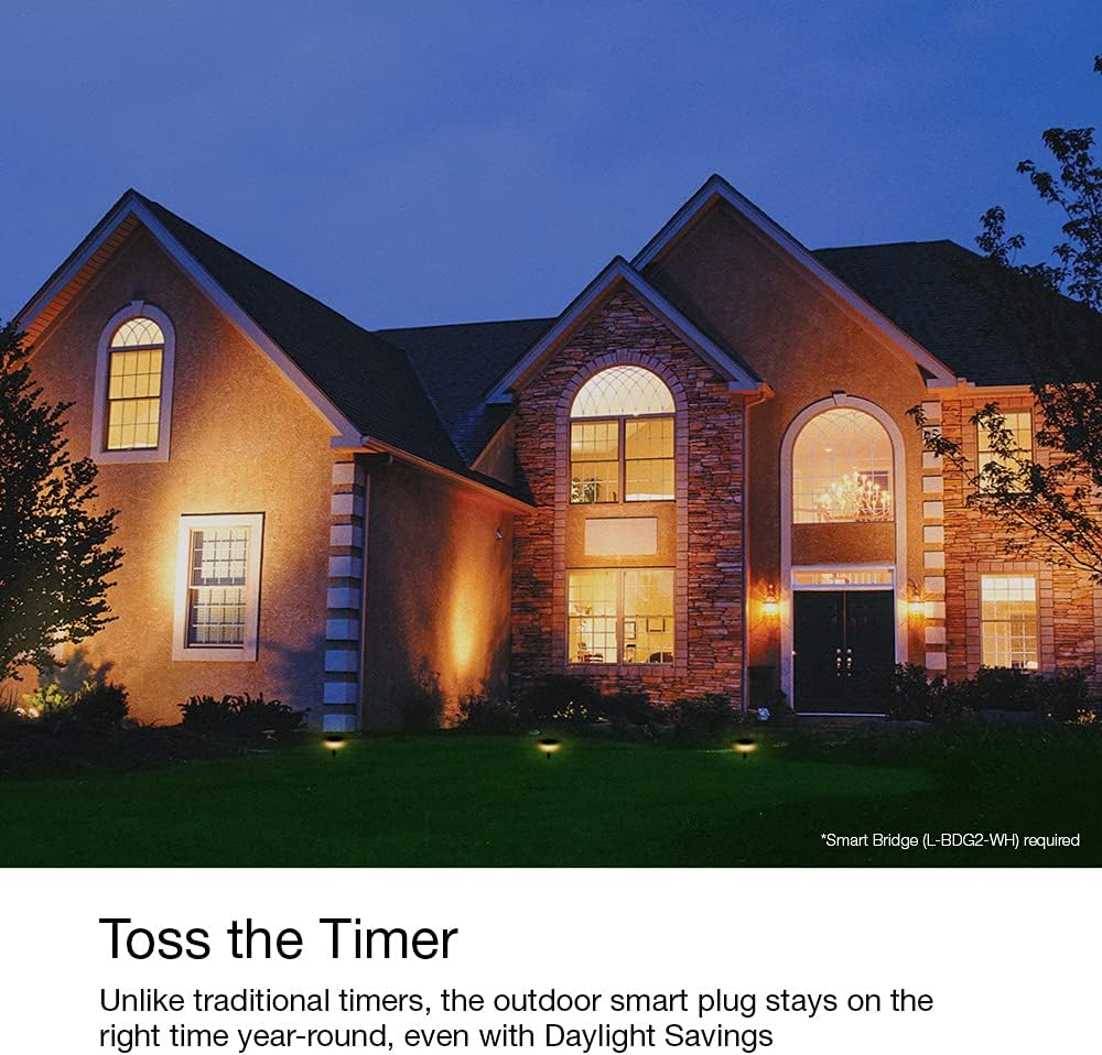 • TOSS THE TIMER: Unlike traditional timers, the outdoor smart plug stays on the right time year-round, even as the seasons change and with Daylight Savings (Lutron Caseta Smart Hub required)