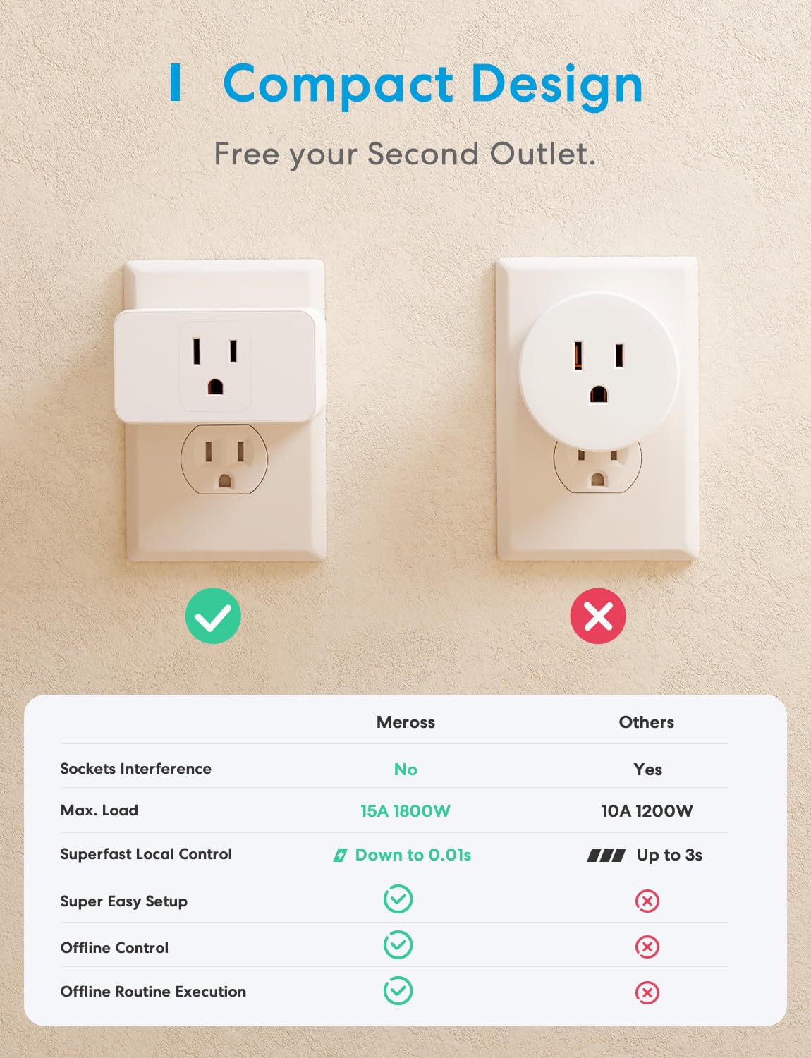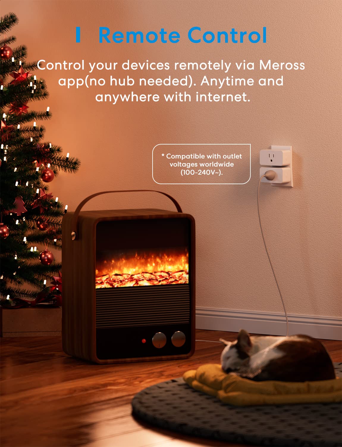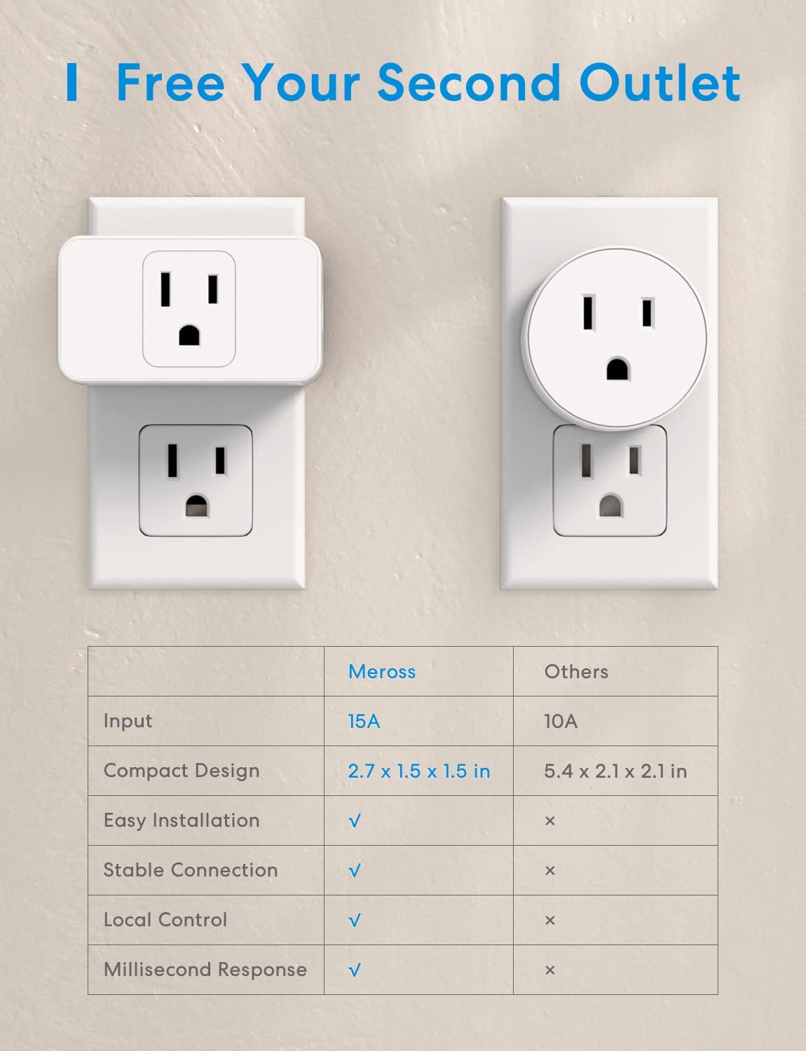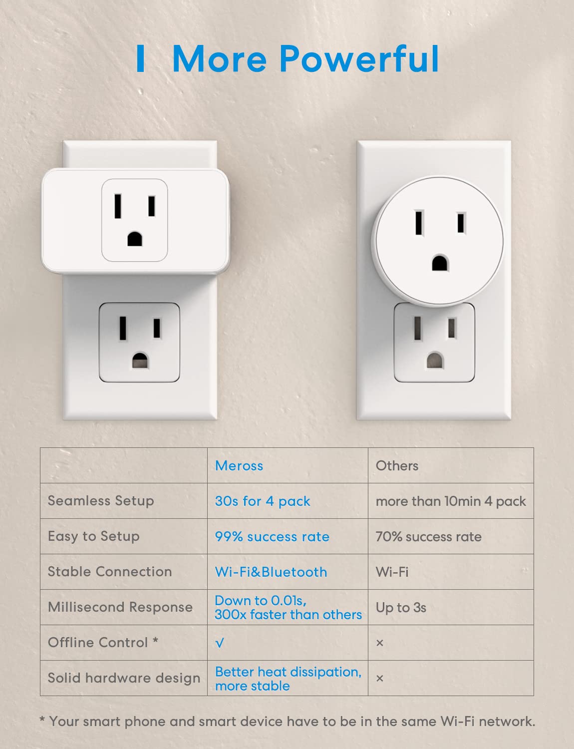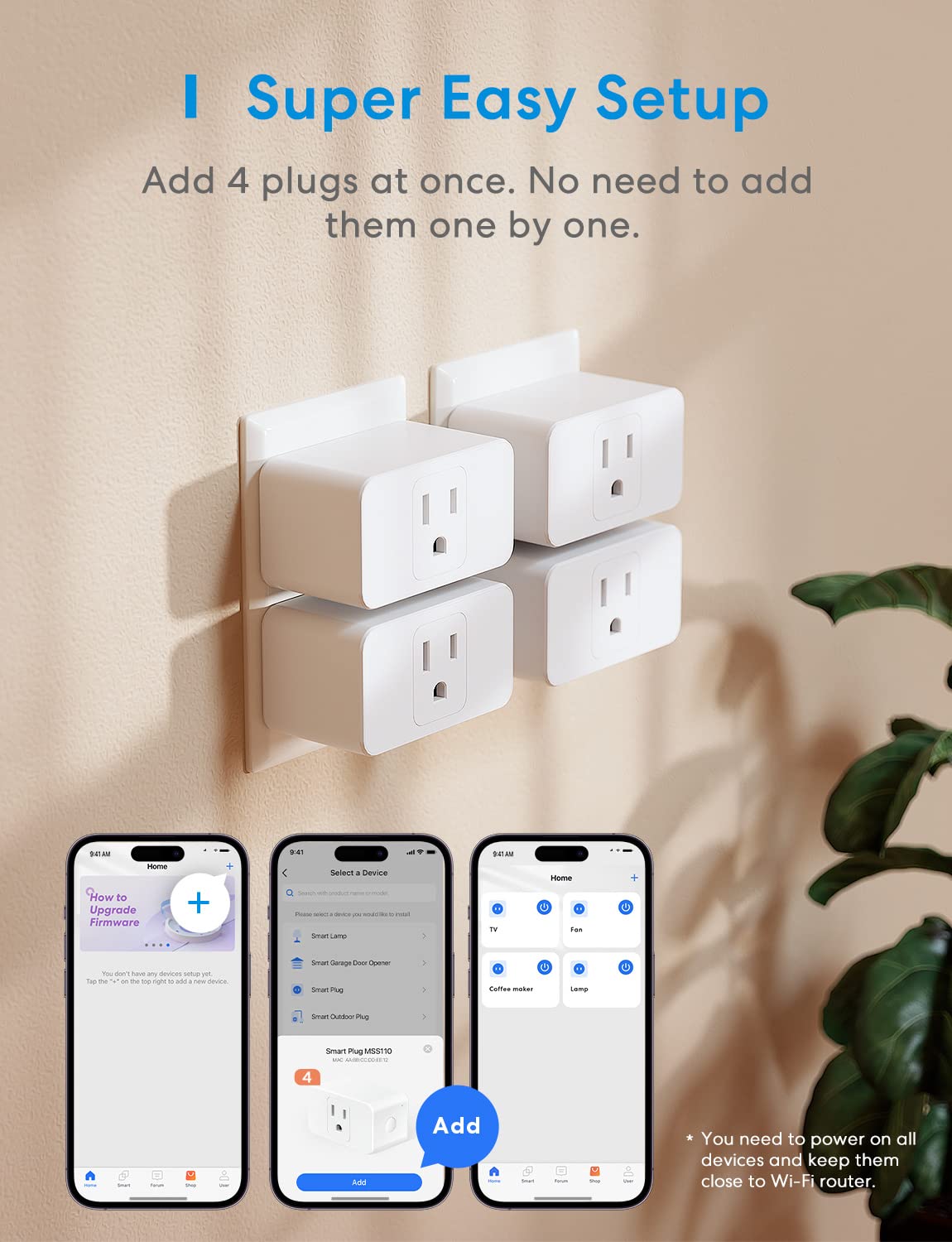 Meross Wi-Fi Smart Plug Mini, 15 Amp & Reliable Wi-Fi Connection, Support Alexa, Google Assistant, Remote Control, Timer, Occupies Only One Socket, 2.4G WiFi Only, 4 Pack