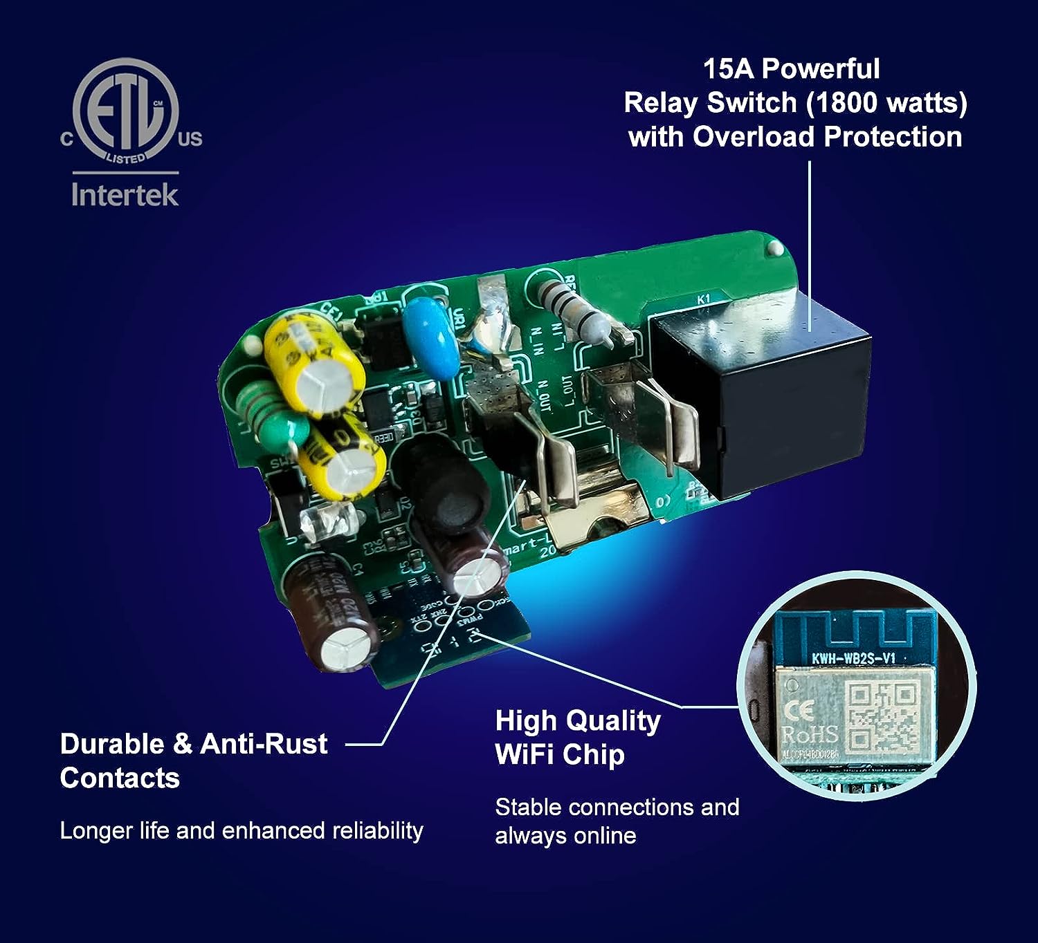 • 👊 𝗣𝗢𝗪𝗘𝗥𝗙𝗨𝗟 𝗢𝗨𝗧𝗣𝗨𝗧: 15A (1800 watts) High Quality Relay vs 10A for most competing smart plug models.