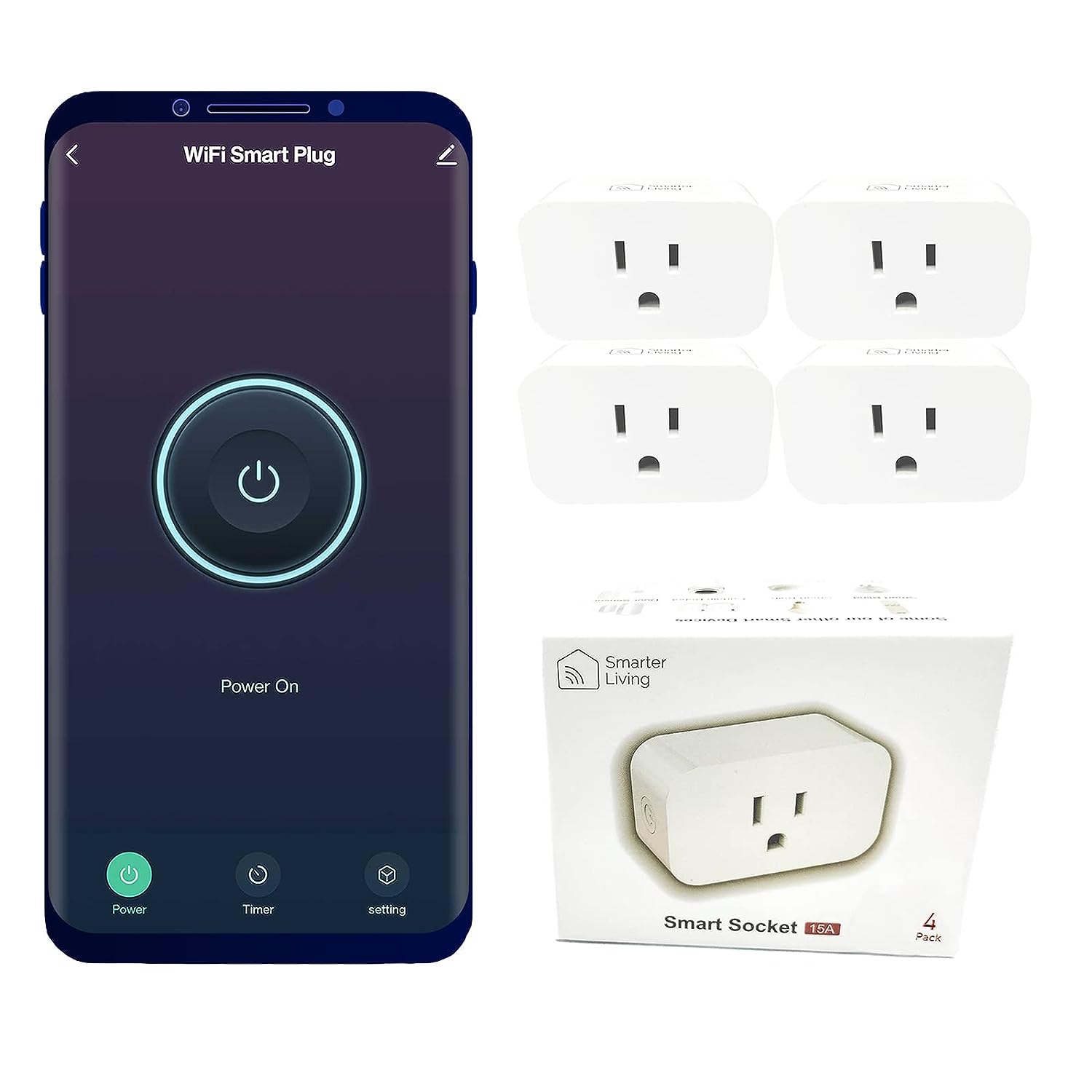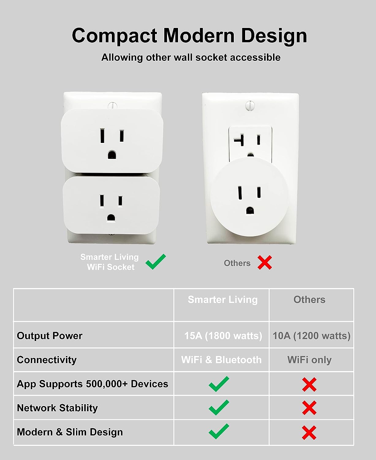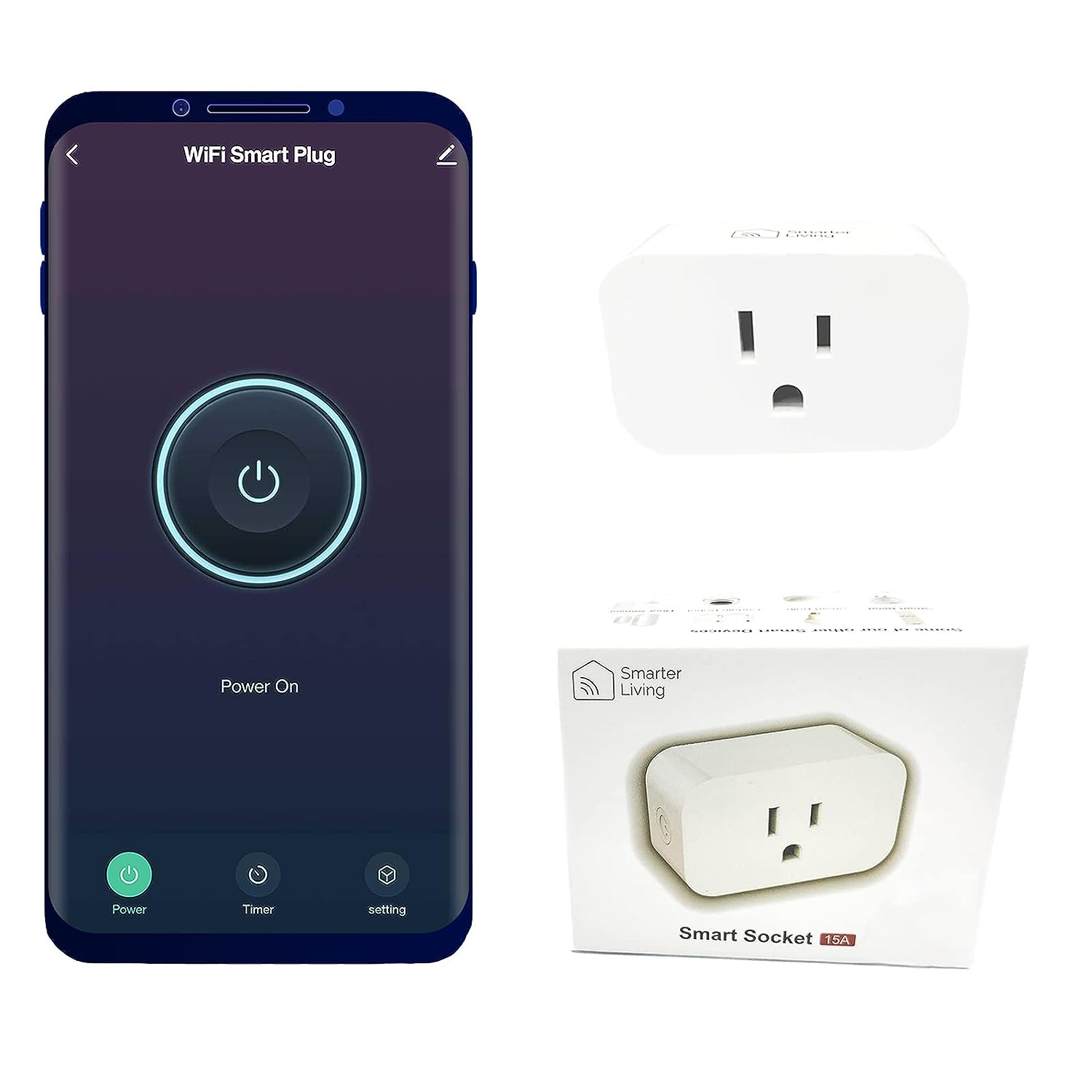 Smarter Living - WiFi Smart Plug (Single Pack), Reliable WiFi, Supports 15A 1800 Watts, Small Size, No Hub Required, Compatible with Alexa, Google Home, Voice Control, Smart Life and Tuya App