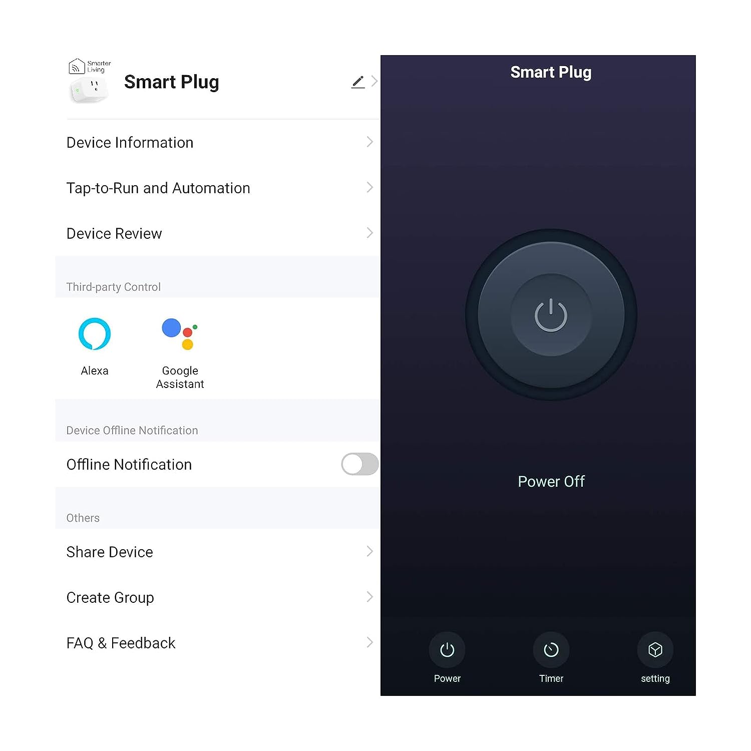 • ★ 𝗦𝗠𝗔𝗥𝗧 𝗙𝗘𝗔𝗧𝗨𝗥𝗘𝗦: Share device with other users, Scheduling, Countdown, Auto-Off after being on for X amount of time, Random On/Off, Sunrise / Sunset, Toggle device status light on / off, History Activity Log.