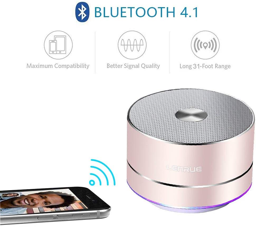 LENRUE A2 Portable Wireless Bluetooth Speaker with Built-in-Mic,Handsfree Call,AUX Line,TF Card,HD Sound and Bass for iPhone Ipad Android Smartphone and More(Rose Gold)