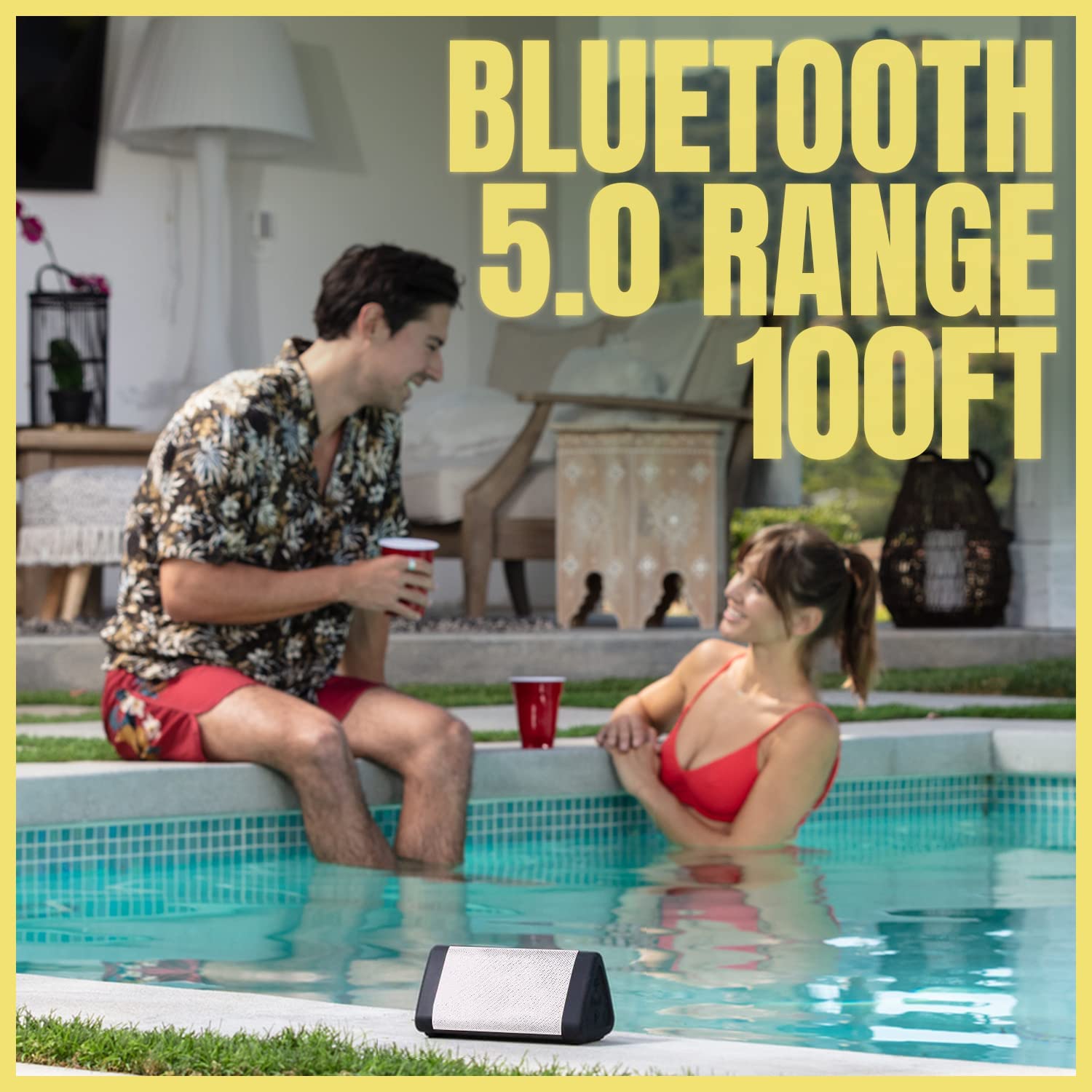 • ? Suitable for INDOOR AND OUTDOOR USE - Incredible BLUETOOTH (5.0) RANGE OF 100 FEET meaning CONSTANT UNINTERRUPTED MUSIC