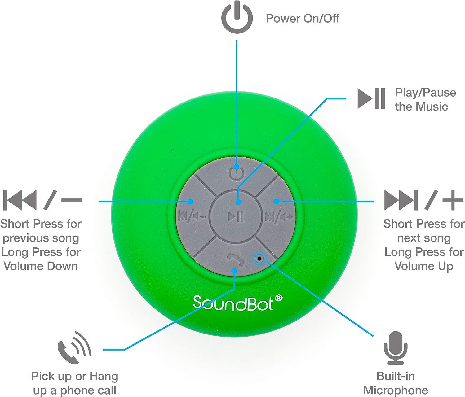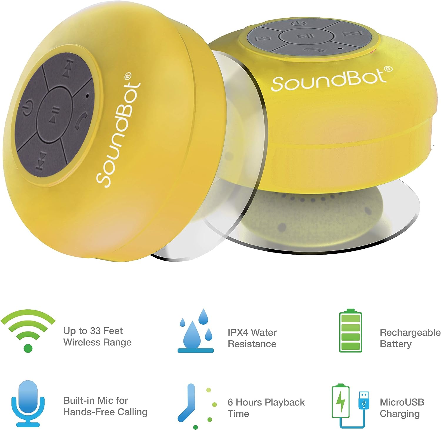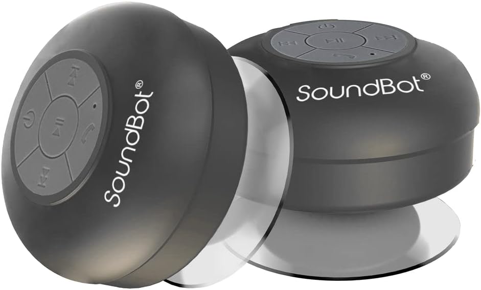 Soundbot SB510 HD Bluetooth Shower Speaker, Water Resistant Handsfree Portable Speakerphone with Built-in Mic, 6hrs of Playtime, Control Buttons and Dedicated Suction Cup White