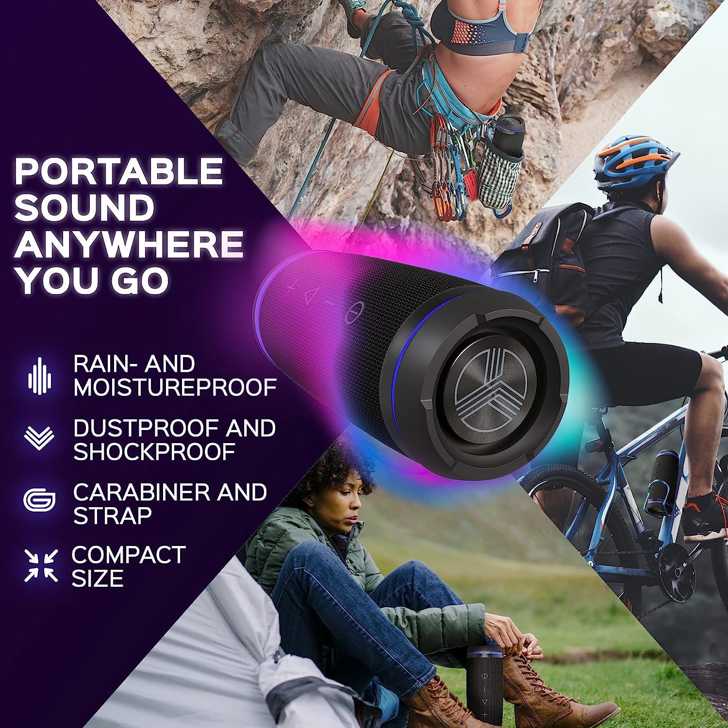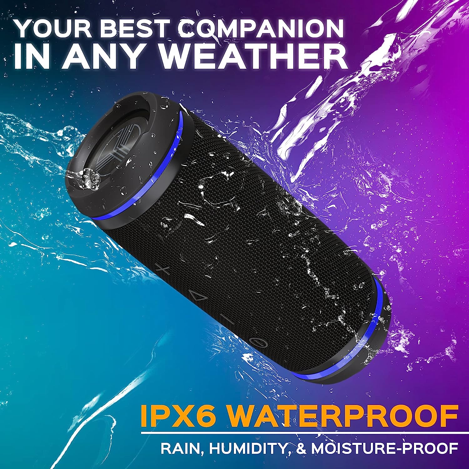 • Ultra-Durable Body – Conquer Mother Nature’s fiercest challenges with an impact-resistant, shockproof, dustproof and IPX6 waterproof Bluetooth speaker. Ideal for outdoors, parties, and more.