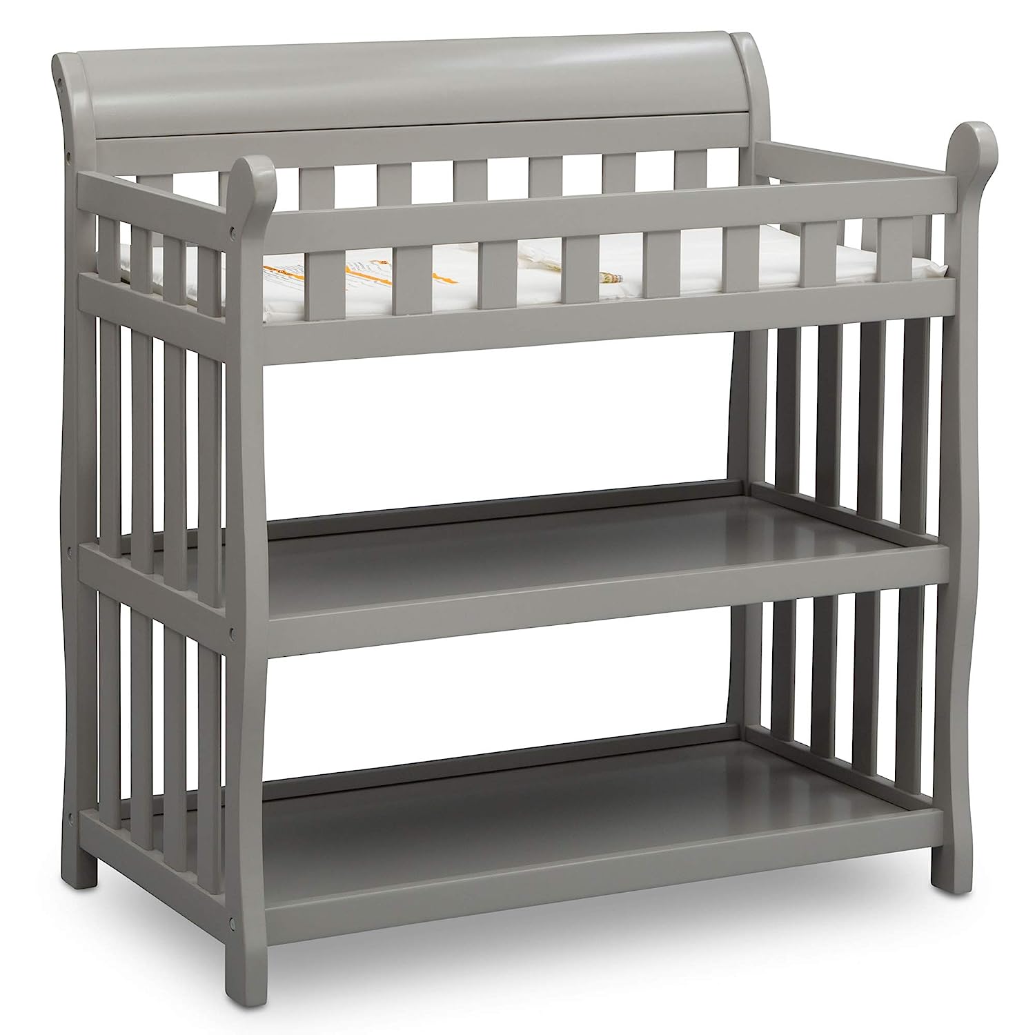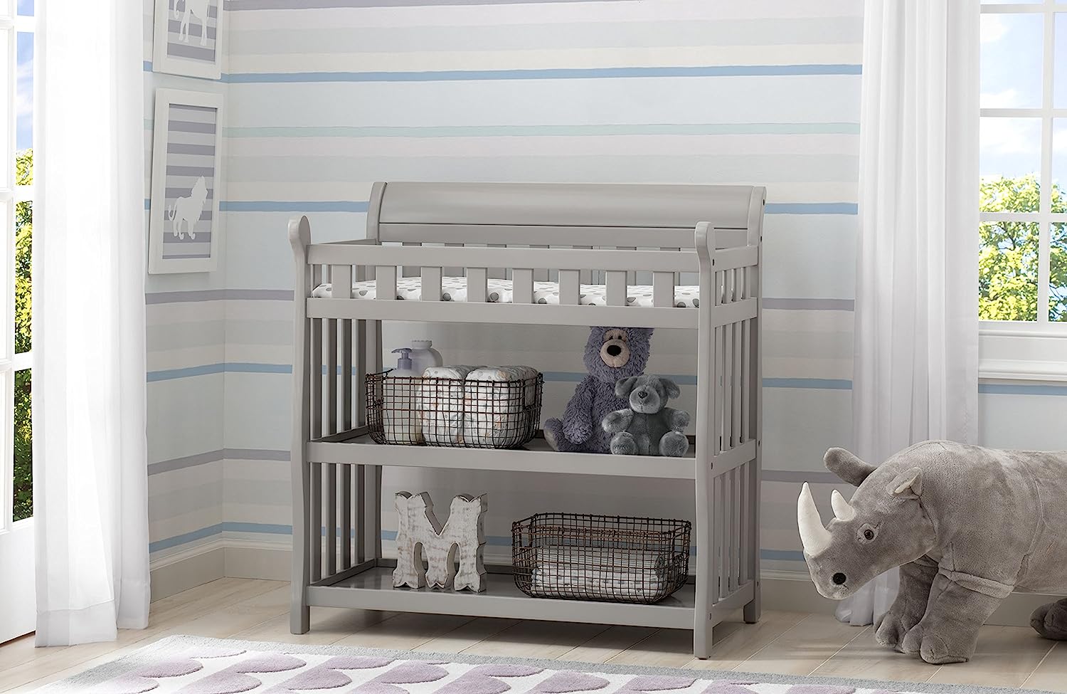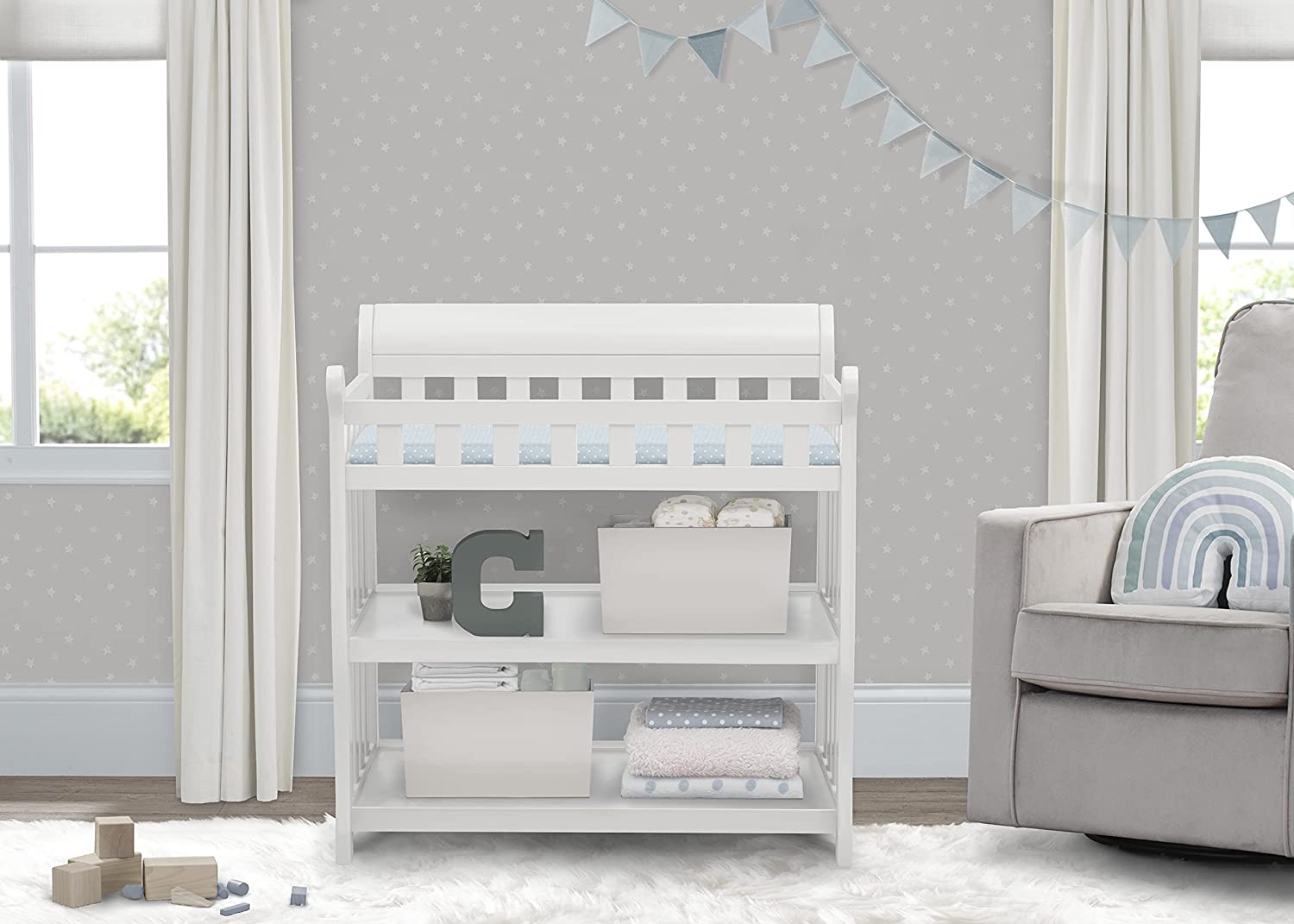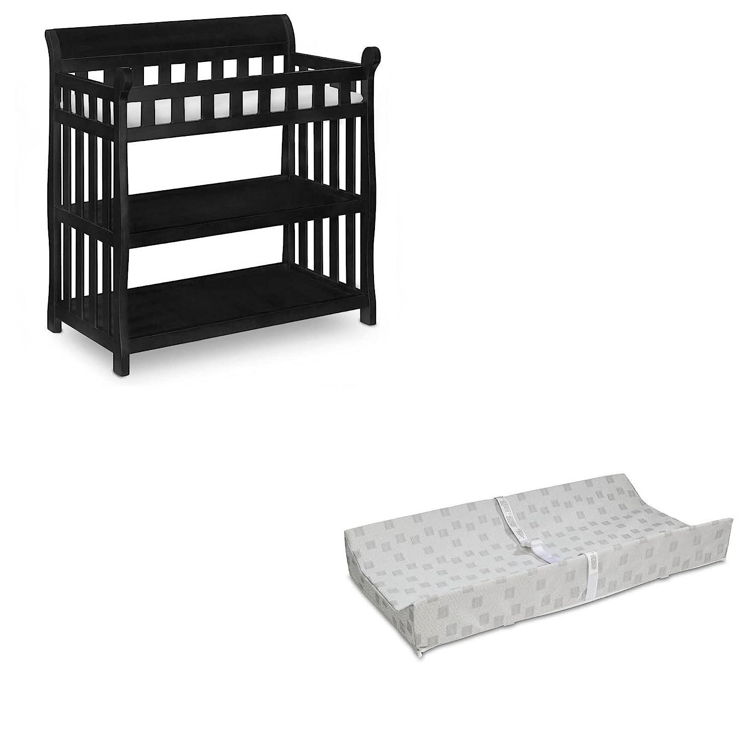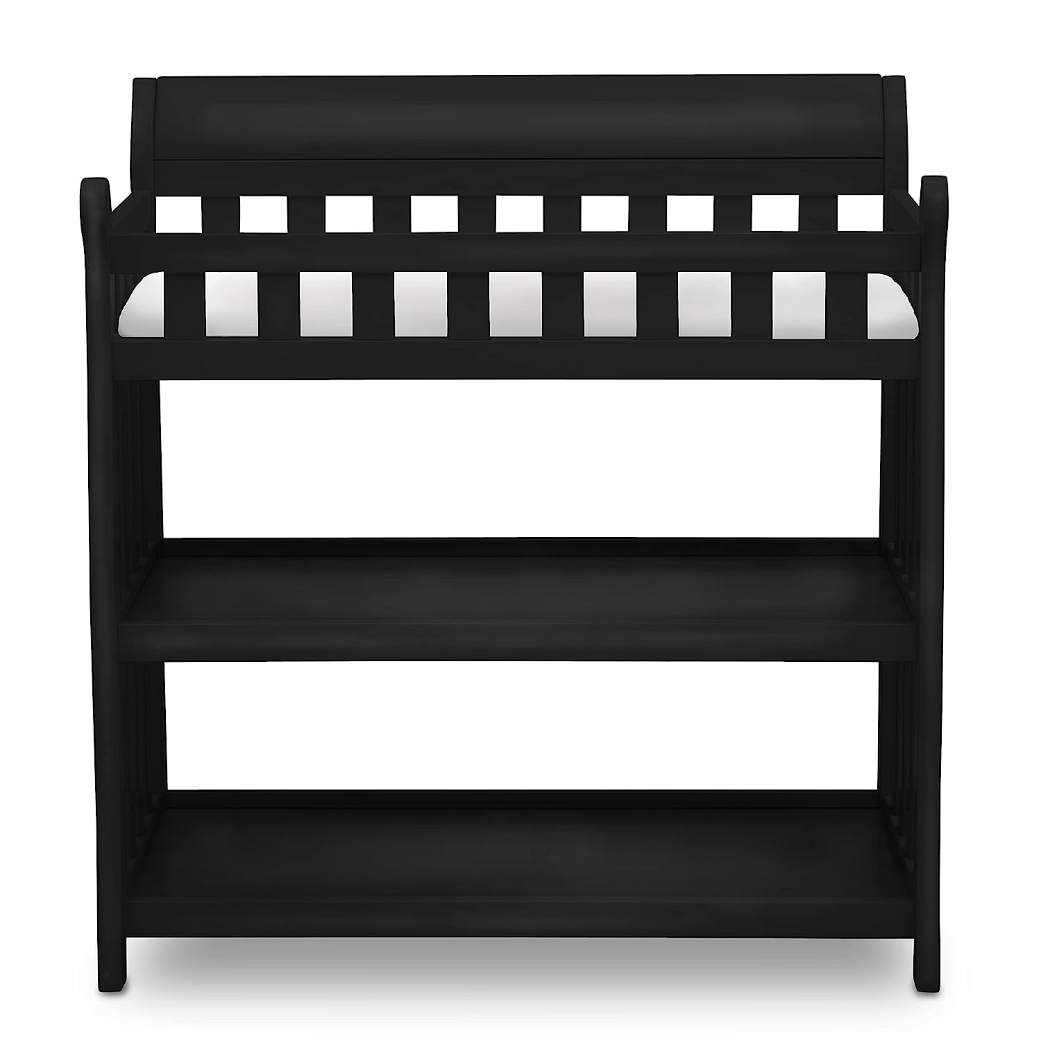 The Eclipse Changing Table combines function with style and craftsmanship. Its chic design, coupled with a gorgeous finish, makes it a must-have for your little one’s nursery. It features ample changing space with side rails to keep your baby safe. Comes with a waterproof mattress and safety strap. Two shelves provide easy to reach storage space for all things baby. Some assembly required. JPMA certified.