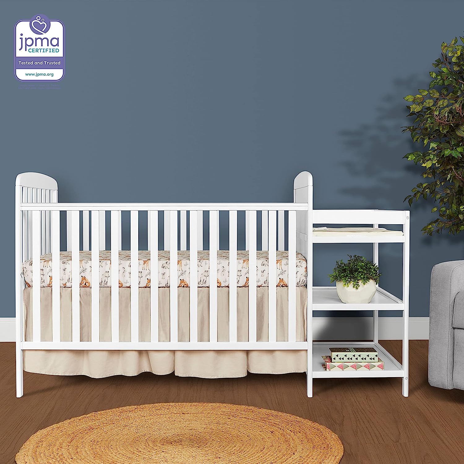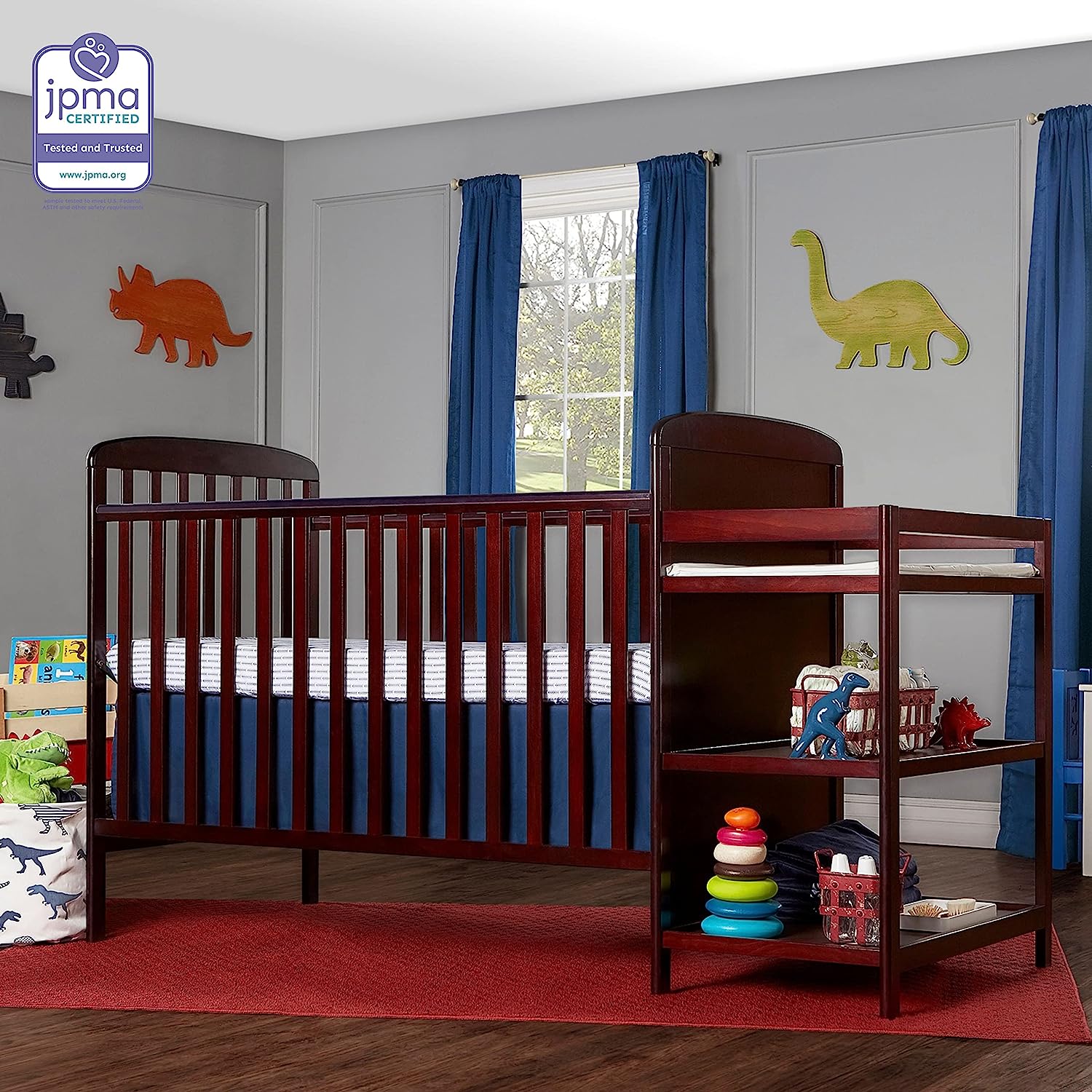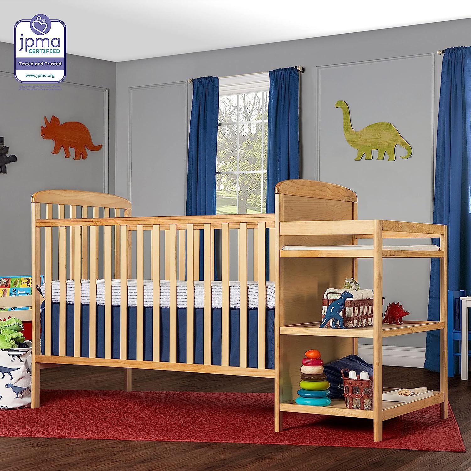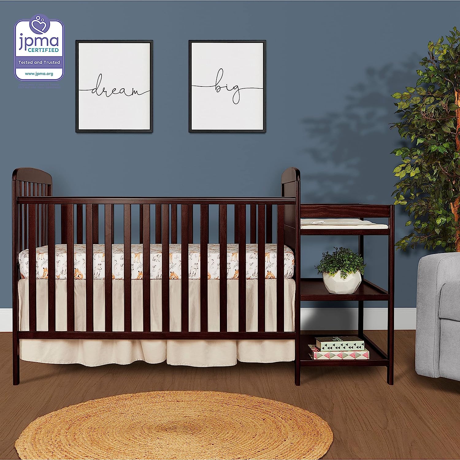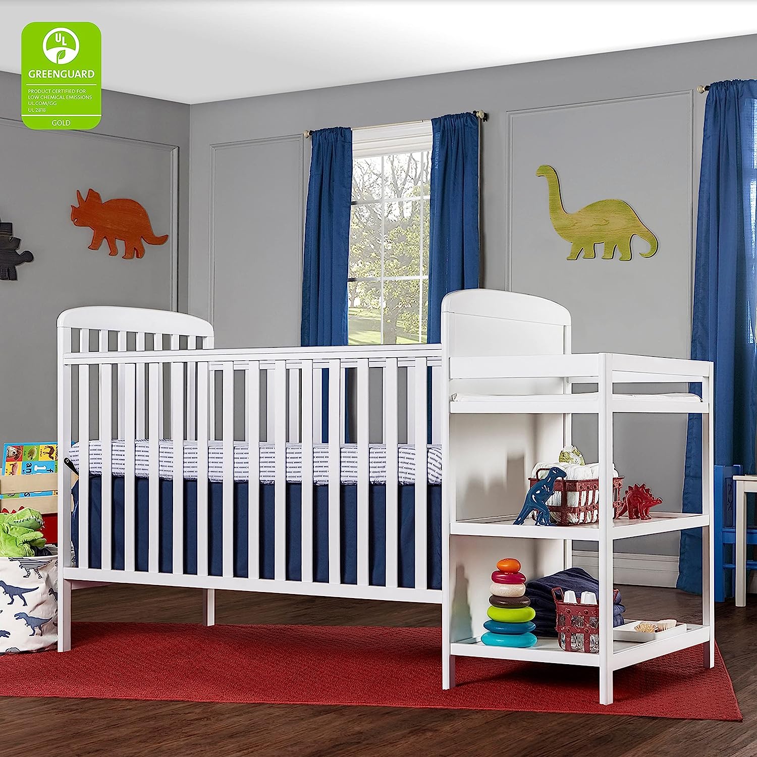The Anna 4-In-1 Full Size Crib & Changing Table Combo is a stylish and functional investment that keeps pace with your child’s changing needs. Convert it from a crib to a toddler bed, and then a daybed (Toddler Guardrail/Stabilizer/Full Size Rail sold separately) as your child grows.The changing table with two storage shelves adds to the utility. The changing table is equipped with a custom fit 1” changing pad. There are two open storage shelves beneath the table, allowing you to keep baby essentials handy.The Anna features a sleek and modern design with clean lines. You can choose from six elegant finishes- Black, Cherry, Espresso, Natural, White & Storm Grey and match it effortlessly with any nursery theme! All Dream On Me cribs are tested to ensure all applicable ASTM, JPMA & CPSC standards are met. This Anna comes with a stationary (non-drop side) rail system for added safety. All tools for assembly are included, conversion kit sold separately. Choose any Dream On Me non-toxic, Greenguard certified standard crib mattress for the perfect fit. Maximum weight limit is 50 lbs.