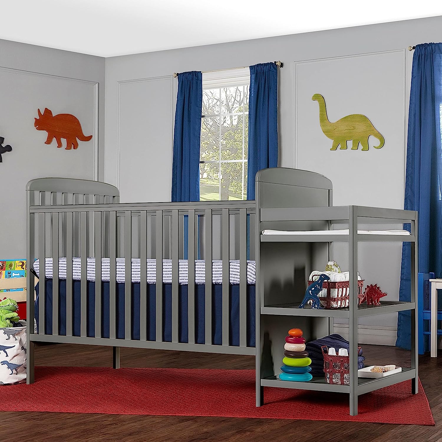Dream On Me Anna 3-in-1 Full-Size Crib and Changing Table Combo in Steel Grey, Greenguard Gold Certified, Non-Toxic Finishes, Includes 1" Changing Pad, Wooden Nursery Furniture
