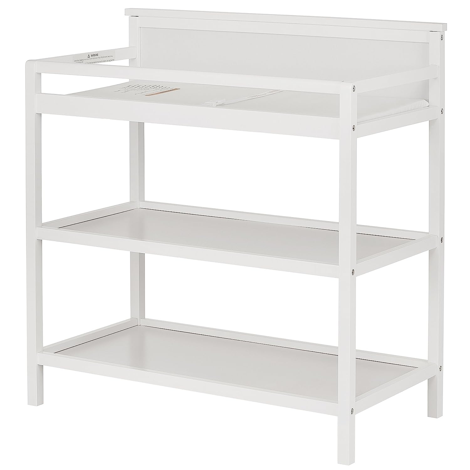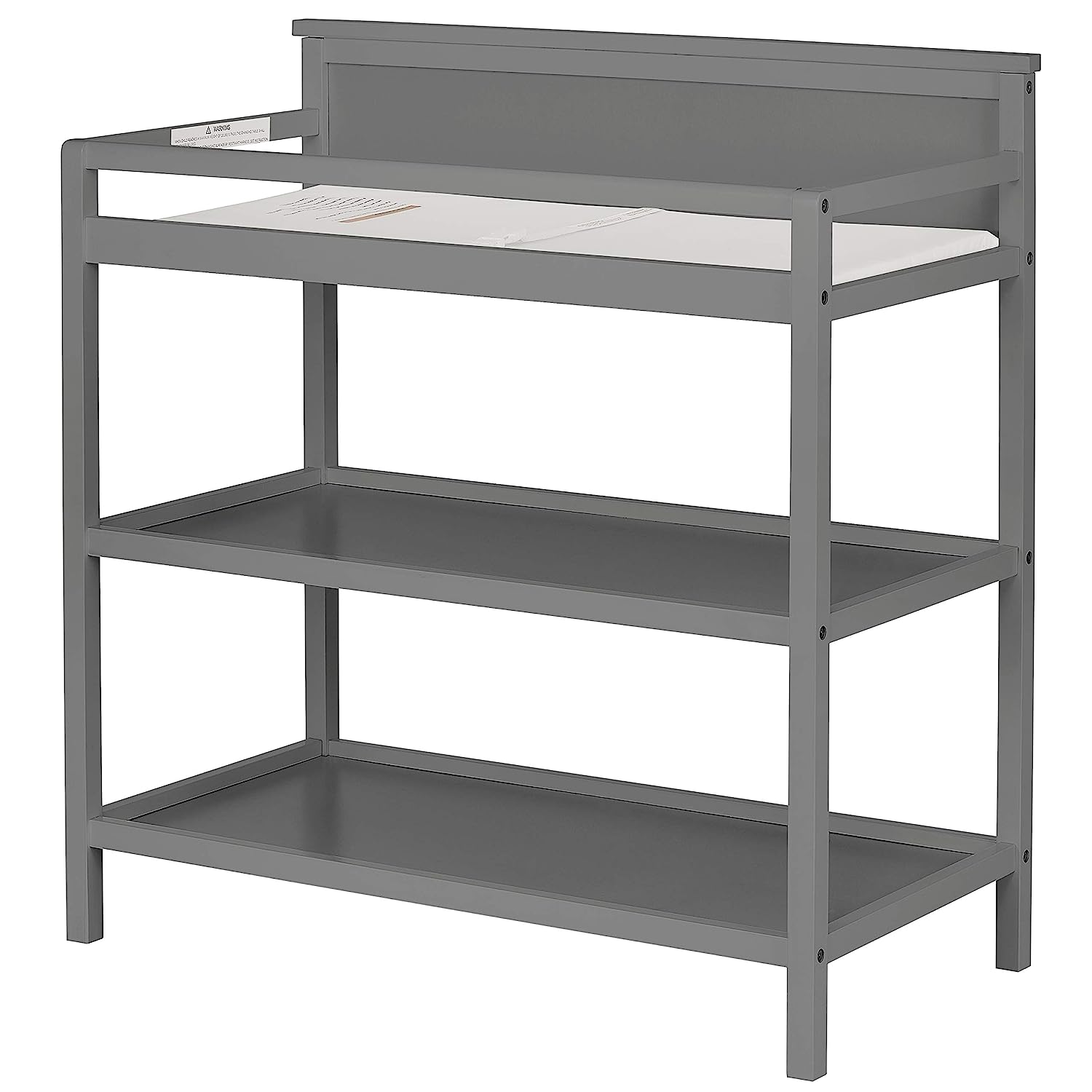 Dream On Me Jax Universal Changing Table is perfect for any nursery. This changing table has a clean modern line design, with a water resistant mattress pad for changing including a safety strap with a fully enclosed dressing area for extra security. Dream On Me Jax changing table has 2 fixed shelves for open storage which is ideal for diapers, wipes and other essentials. This changing table can transition into a night stand as your baby gets older. Dream On Me Jax changing table coordinates with All Dream On Me Crib. All Dream On Me products meets or exceeds government and ASTM safety Standard.