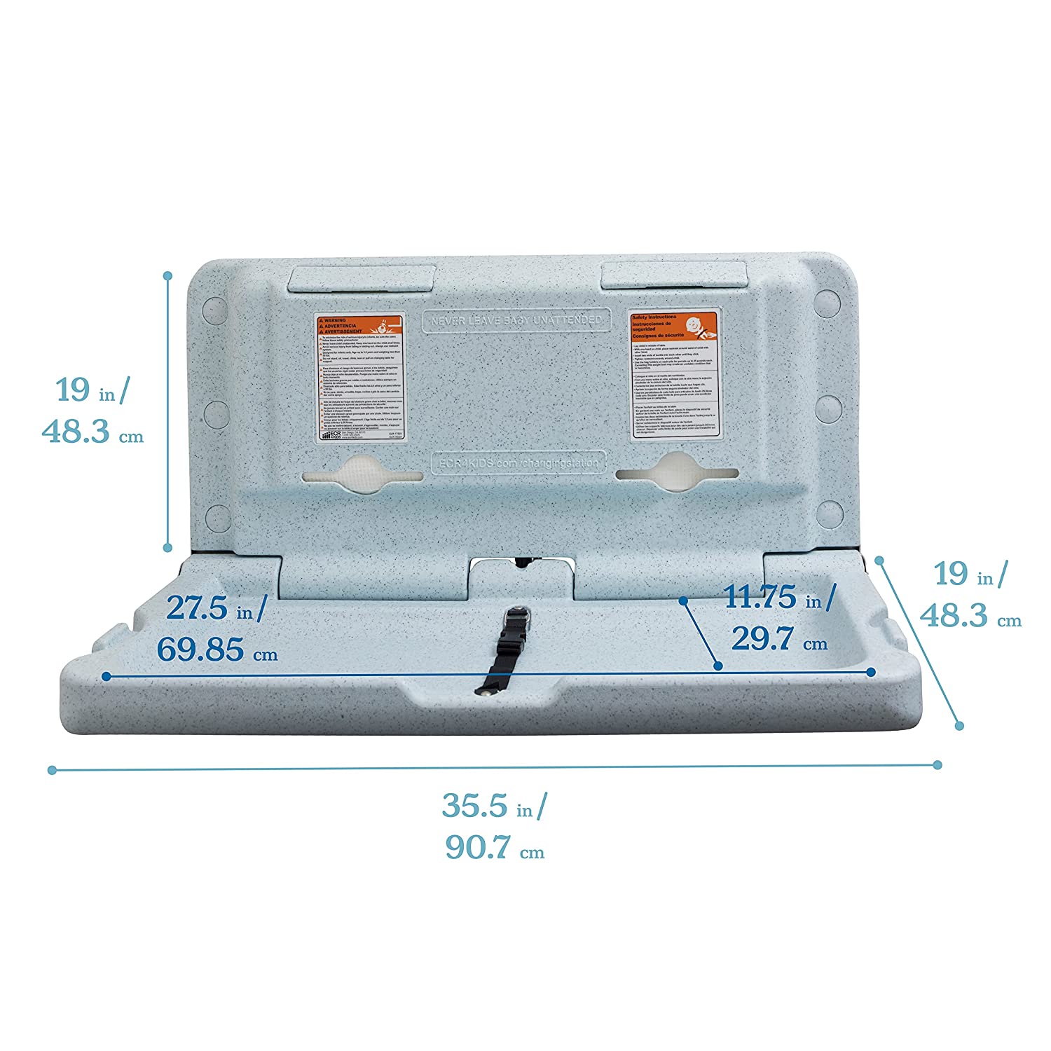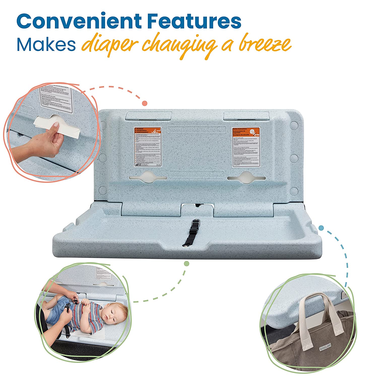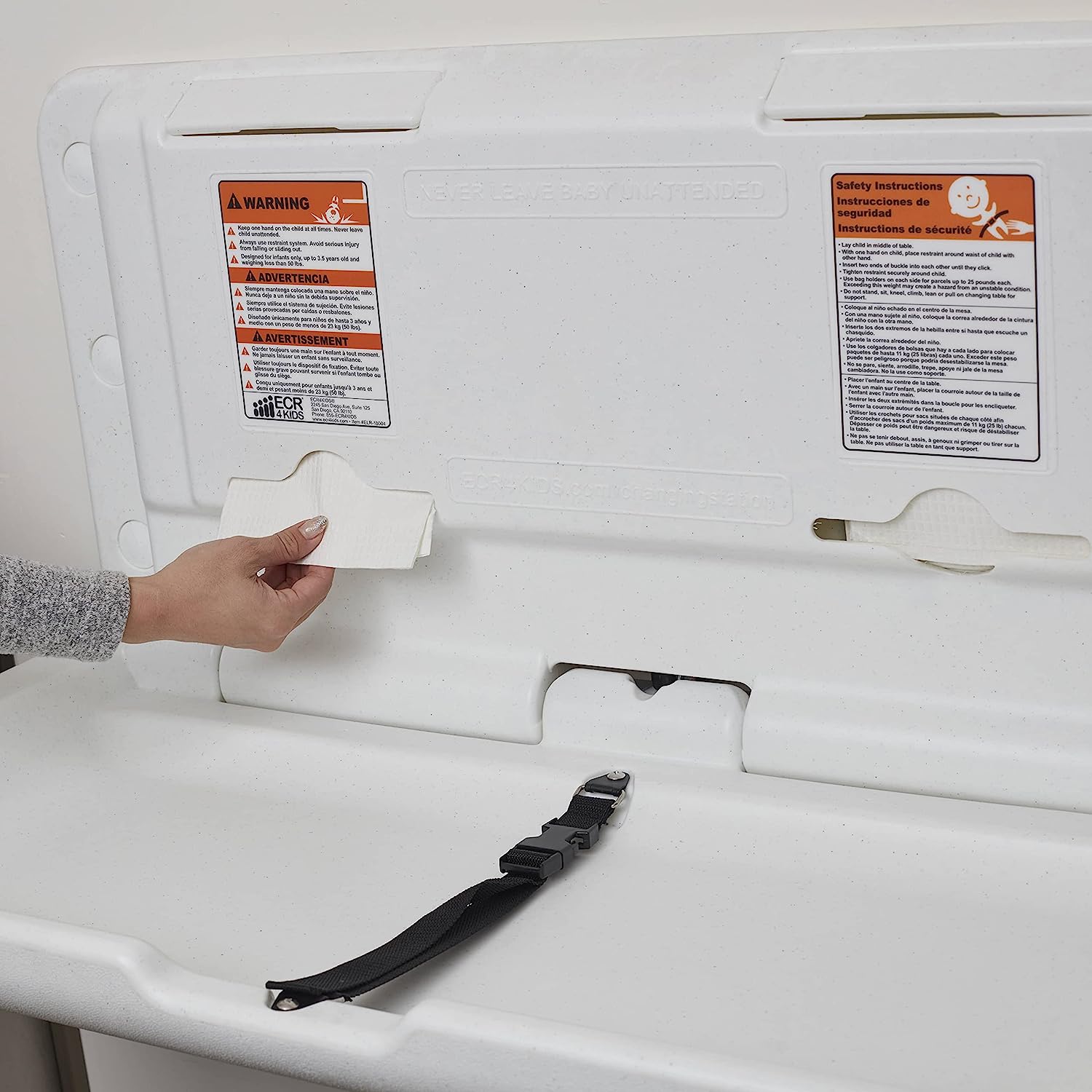 ECR4Kids ELR-18004 Wall-Mounted Baby Changing Station, Horizontal Fold-Down Diaper Change Table with Safety Straps for Commercial Bathrooms, ADA and ANSI Compliant, Free Replacement Straps, White Granite