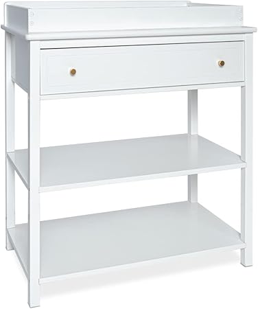 Milliard Nursery Dresser and Baby Changing Table with Storage & Removable Diaper Changing Top, White Modern Diaper Changing Station, Includes Spacious Drawer and Shelves, 18.5 x 35.5 x 40 inches