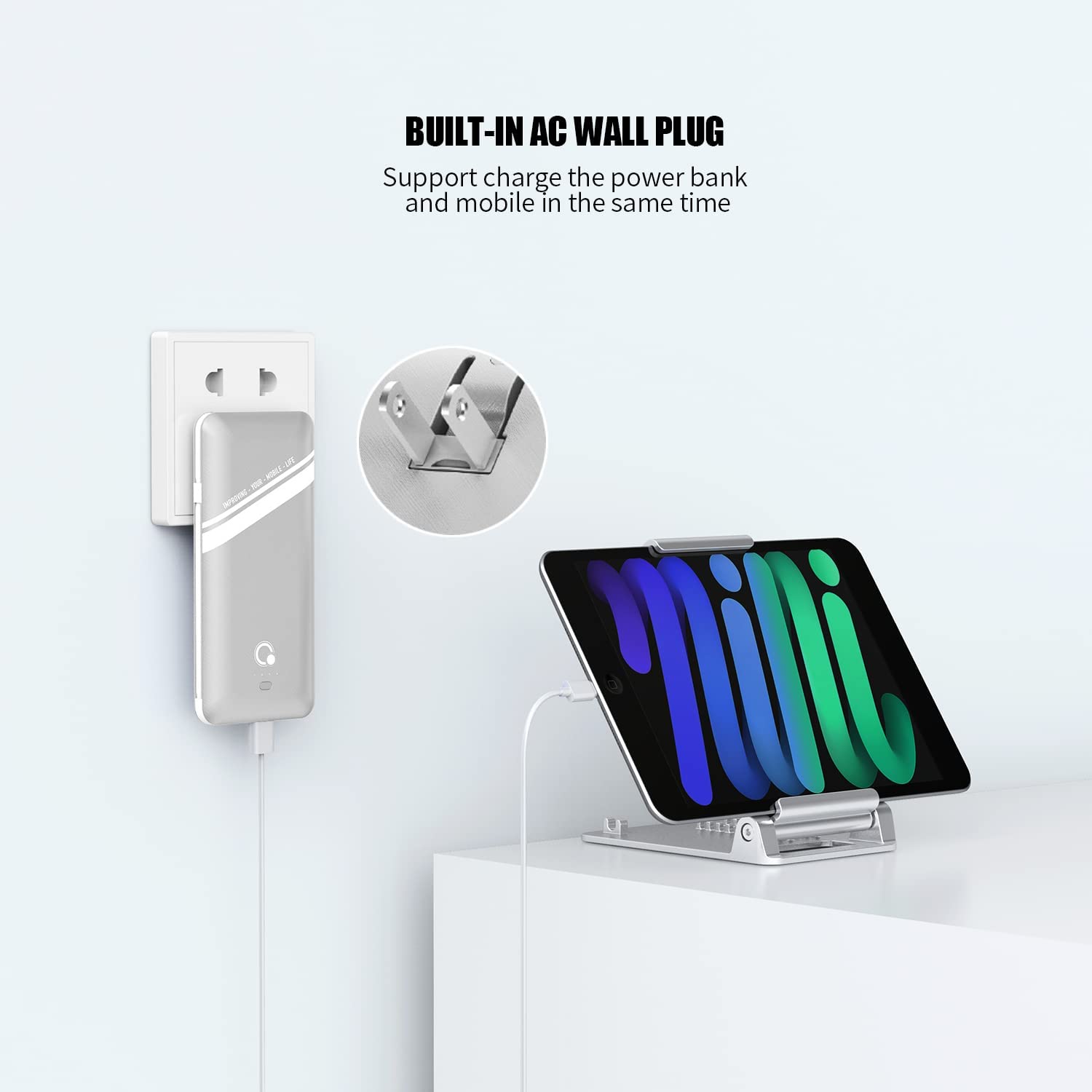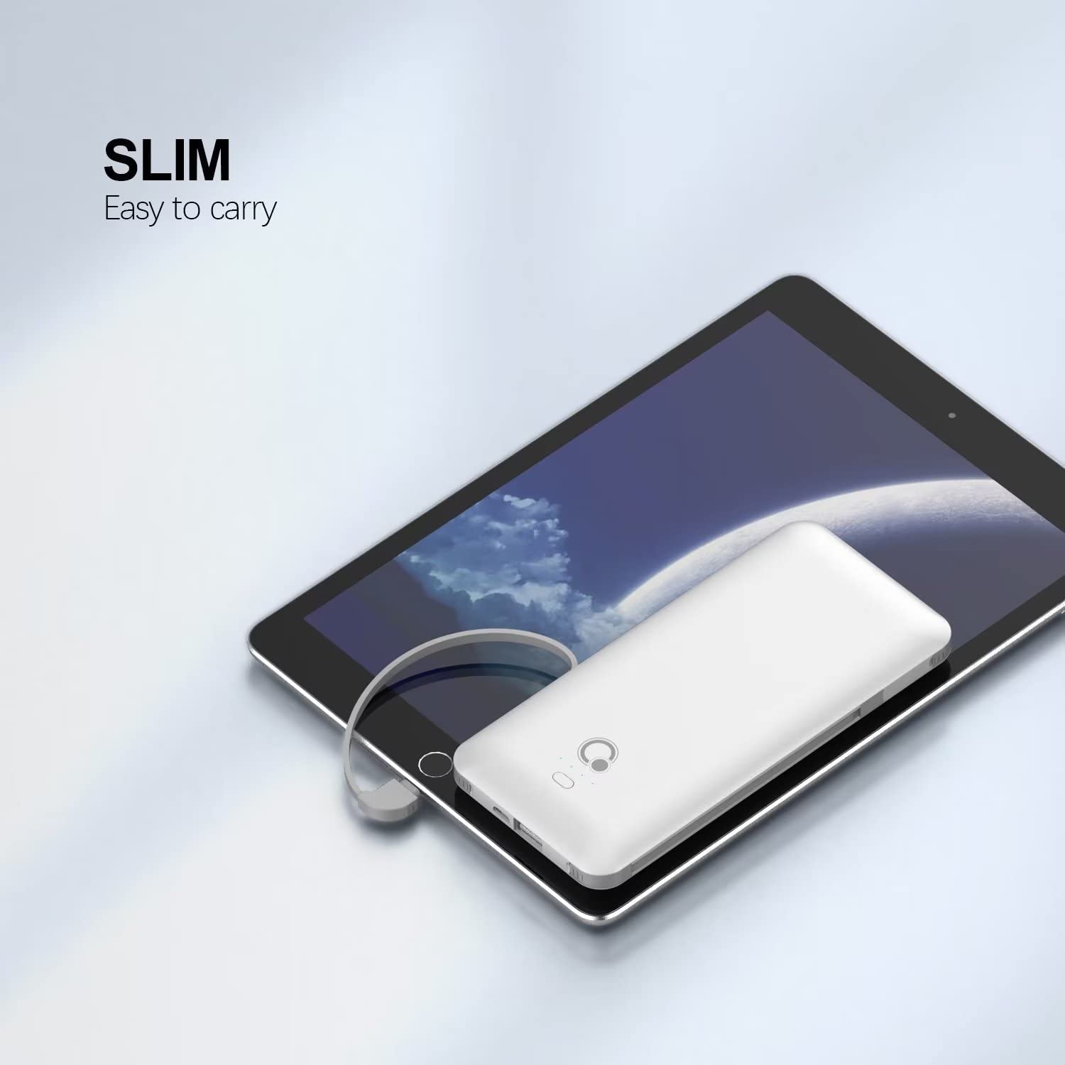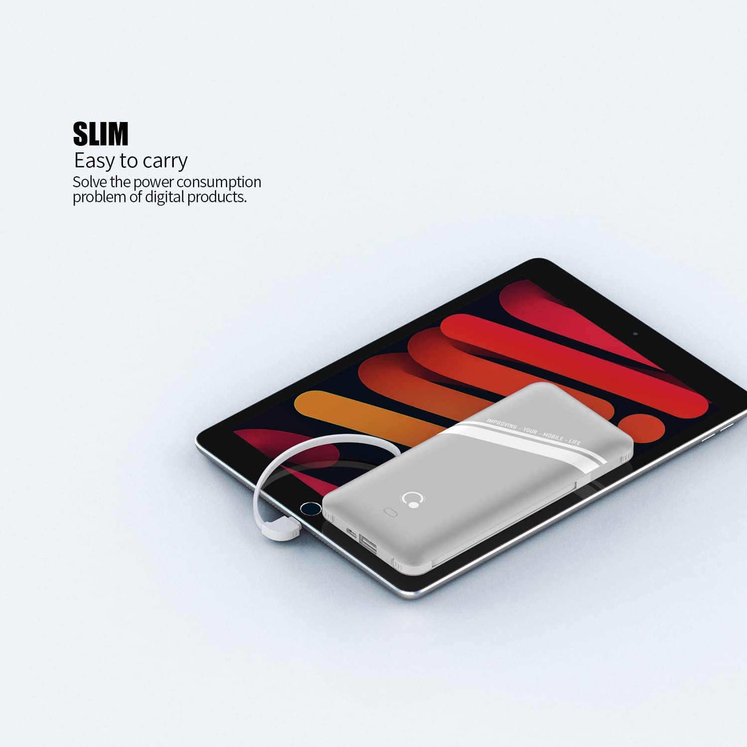 • [SLIM AND COMPACT SIZE POWER BANK]:Q External battery pack only 0.6inch, ultra-thin design, and light weight, which make it easier to carry, built-in AC plug and cables are collapsible, will not give you too much trouble when carrying out