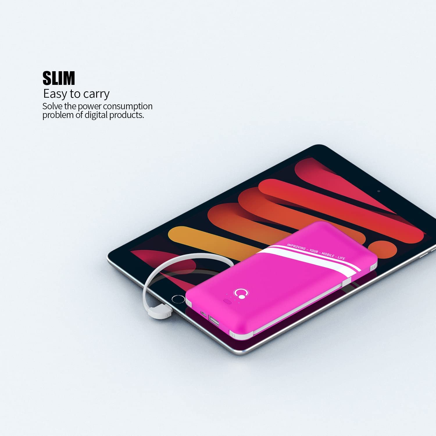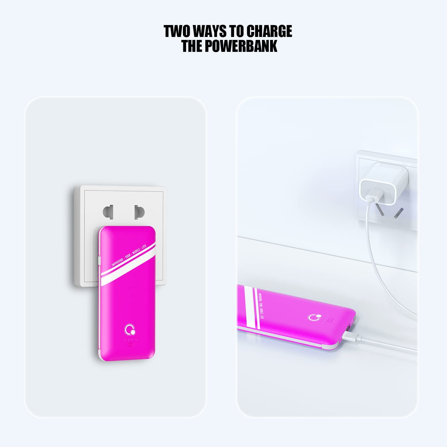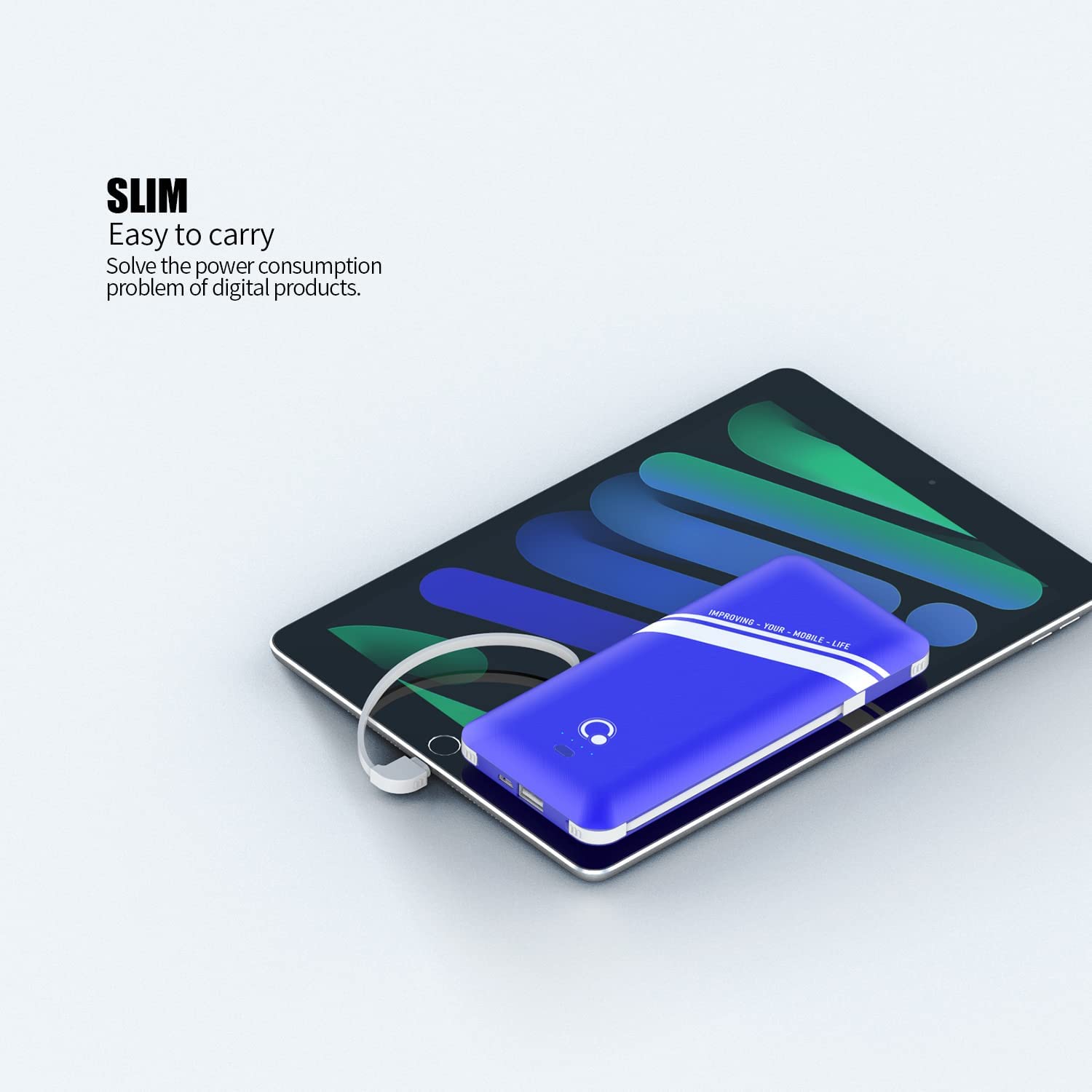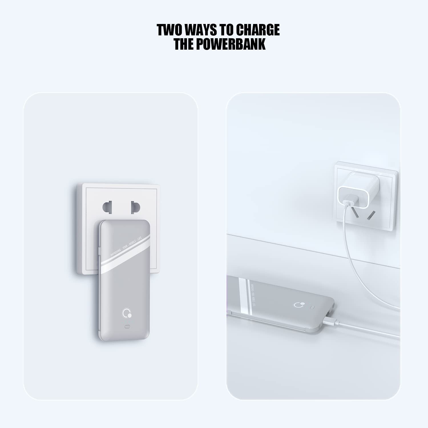 • [SLIM AND COMPACT SIZE POWER BANK]:Q External battery pack only 0.6inch, ultra-thin design, and light weight, which make it easier to carry, built-in AC plug and cables are collapsible, will not give you too much trouble when carrying out
