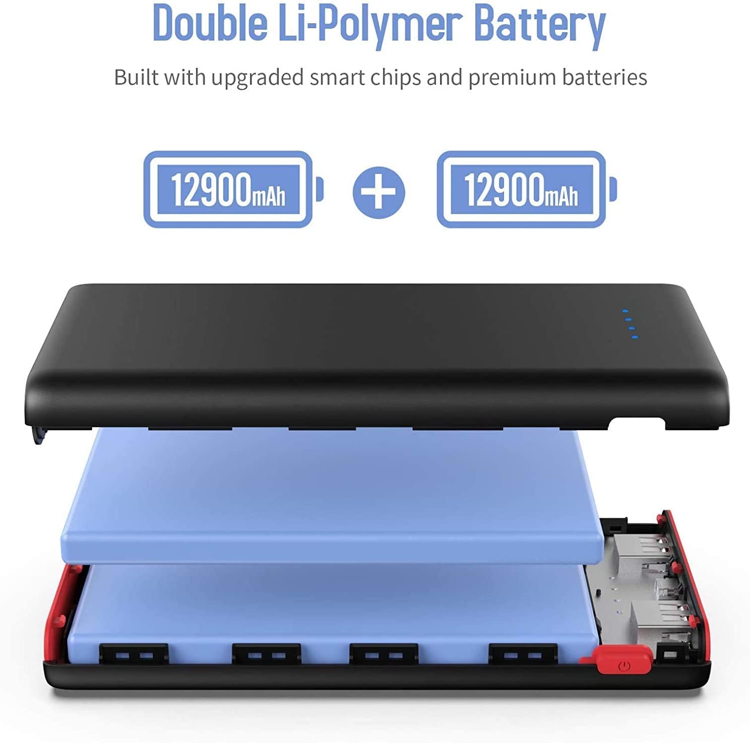 --25800mAh High Capacity charges any smart and cell phones for 6-8 times;