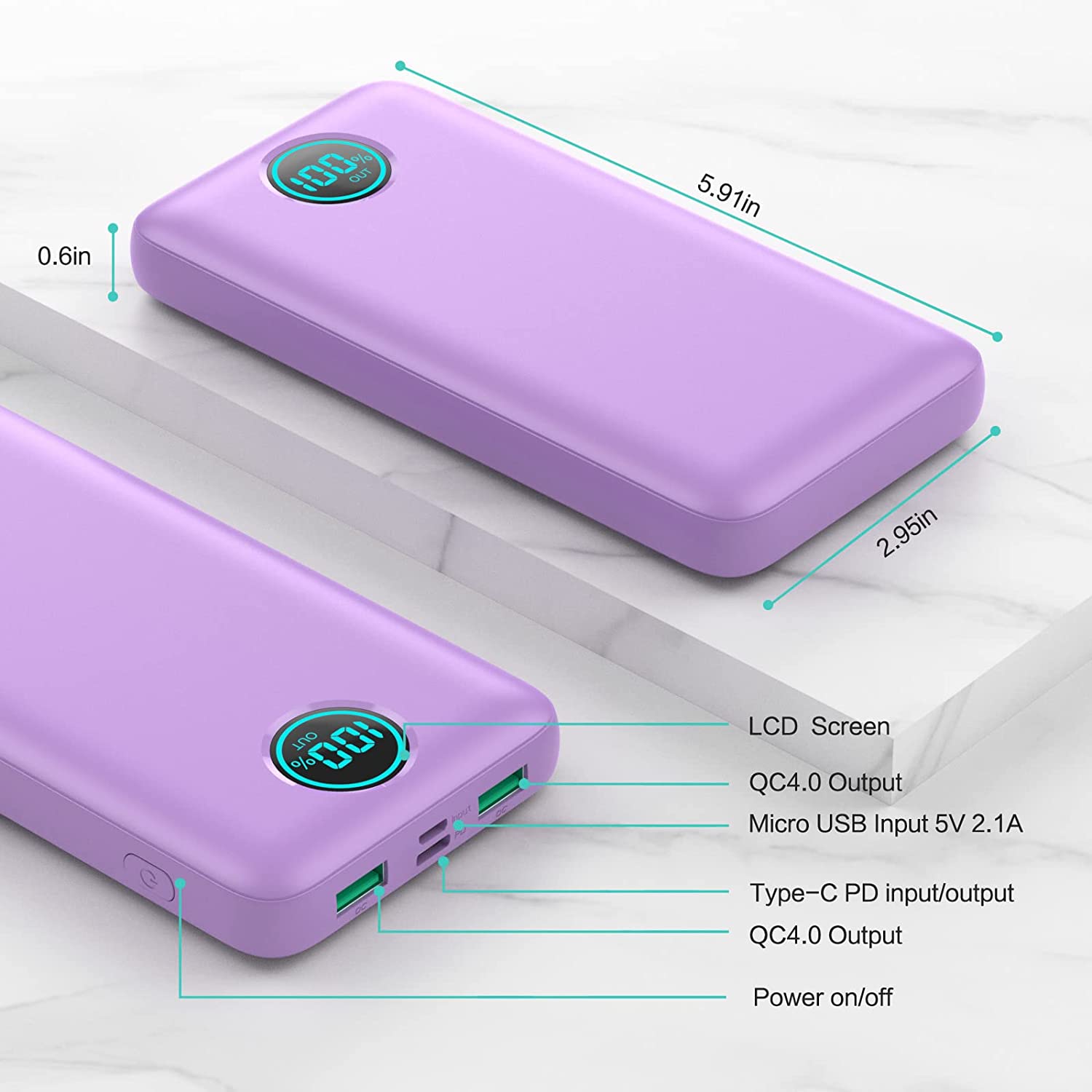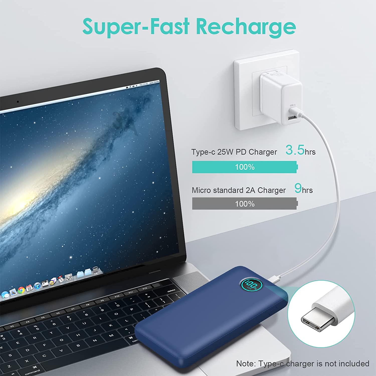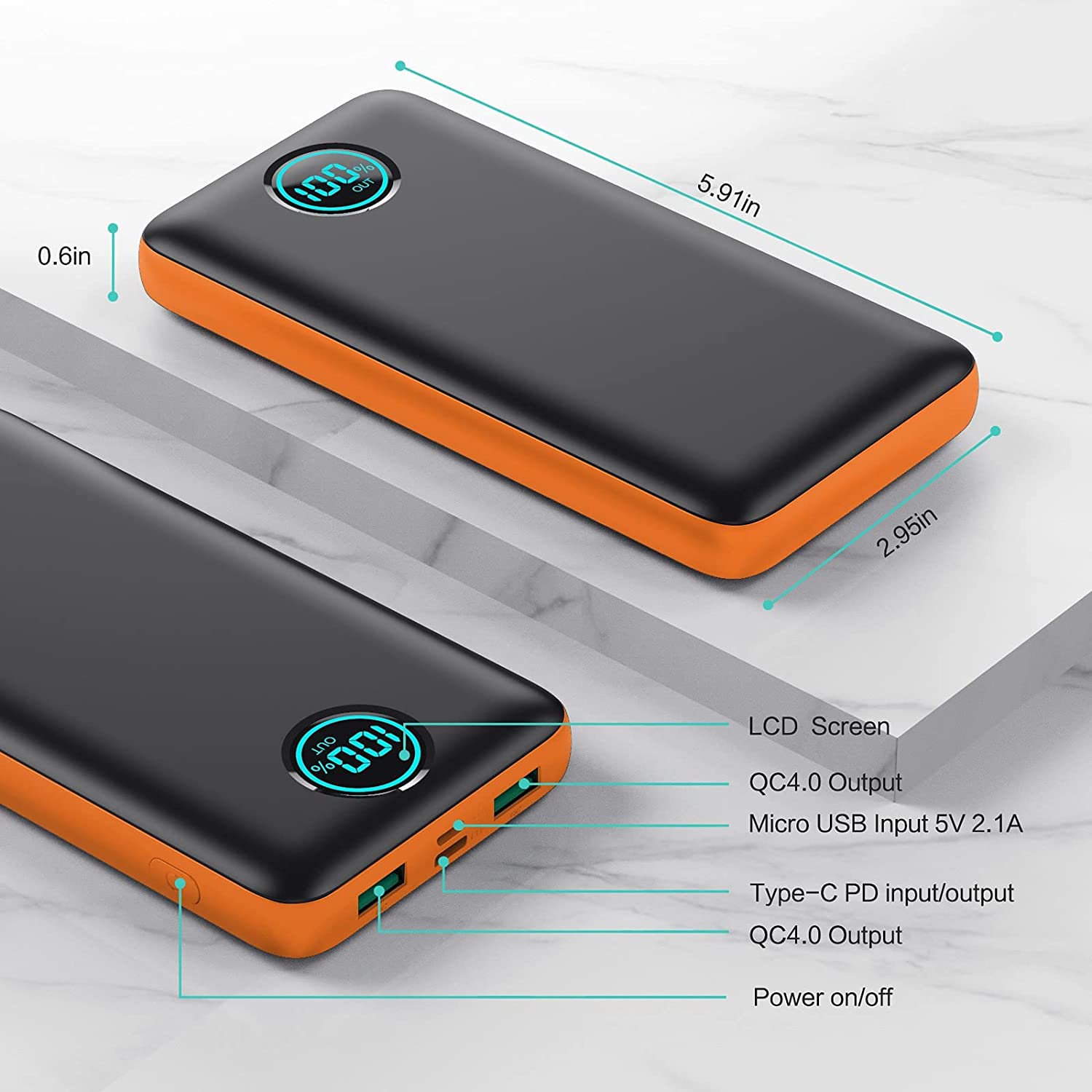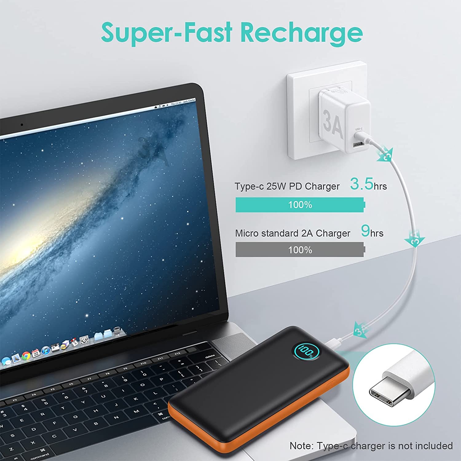 • 【3 Output -Charge 3 Devices At Once】Power bank with 3 Output Ports - QC4.0 output, PD output, 2.1A USB output, you can charge 3 devices simultaneously.Power Delivery 4.0 output and Quick Charge 4.0 output combine to deliver an optimized charge to your devices at up to 25W. Compared with non-fast charging power bank, save more than half of the time.