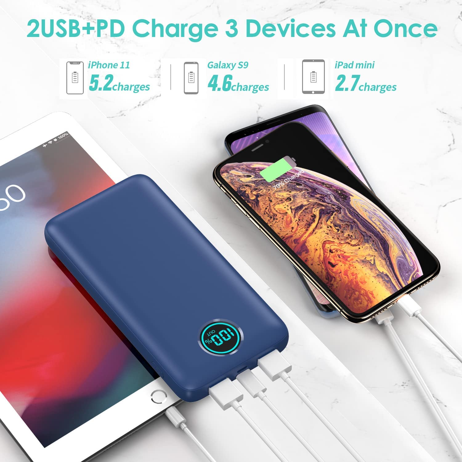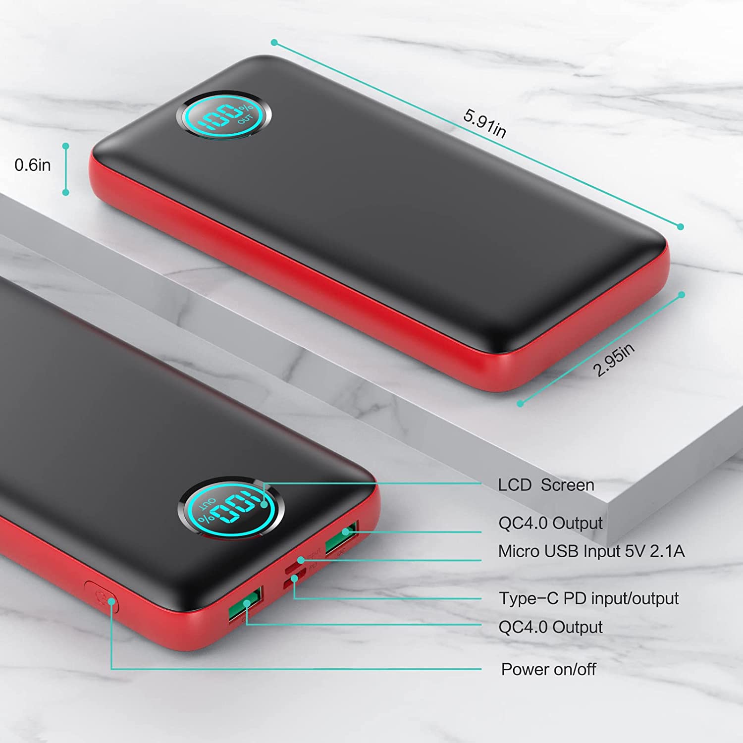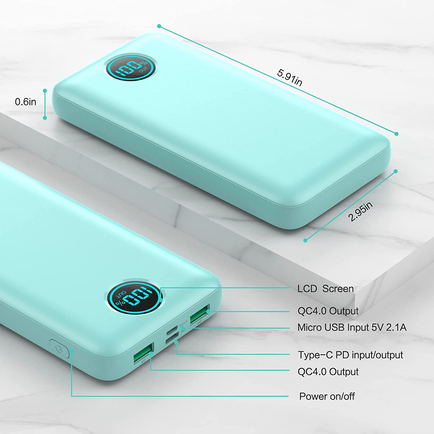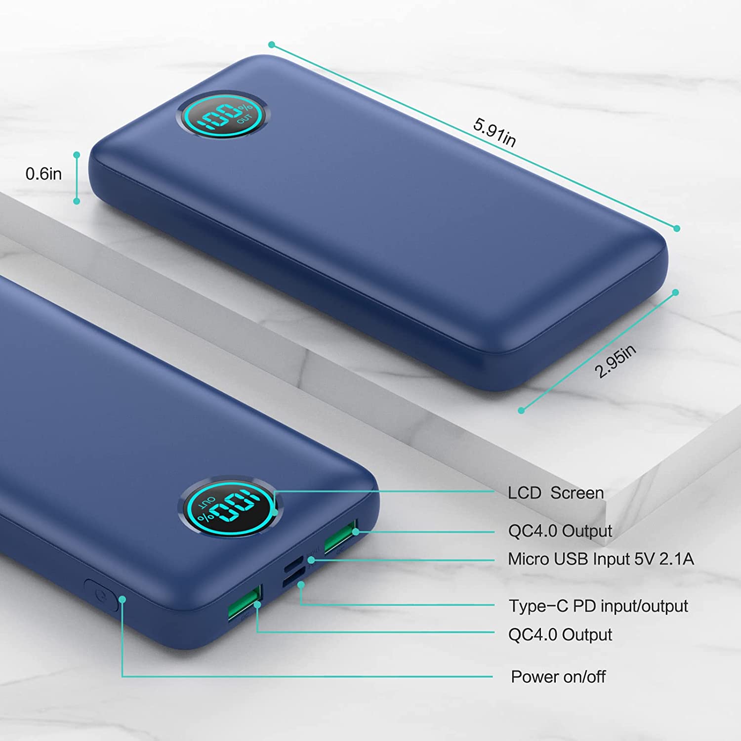 • 【3 Output -Charge 3 Devices At Once】Power bank with 3 Output Ports - QC4.0 output, PD output, 2.1A USB output, you can charge 3 devices simultaneously.Power Delivery 4.0 output and Quick Charge 4.0 output combine to deliver an optimized charge to your devices at up to 25W. Compared with non-fast charging power bank, save more than half of the time.